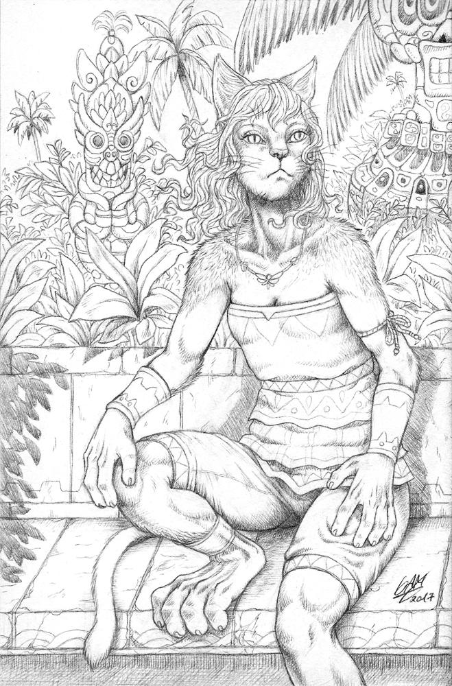 Il·lustració del 2017 representant un personatge qualsevol de l'obra personal "Un lloc estrany", com a exercici de pràctica.