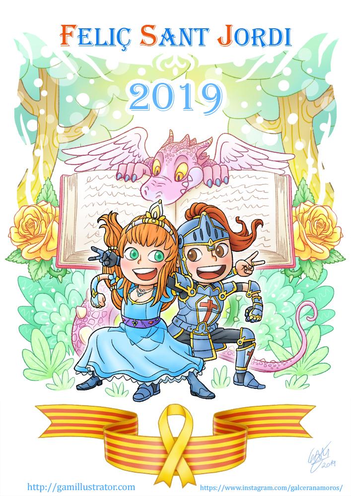 Sant Jordi 2019 princesa cavaller drac rosa groga llibre princesa caballero dragón rosa amarilla libro princess knight dragon yellow rose book llaç groc senyera catalana lazo amarillo bandera catalana yellow ribbon Catalan flag