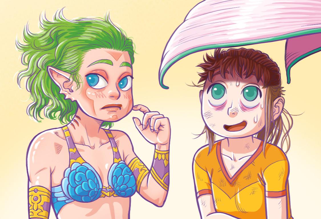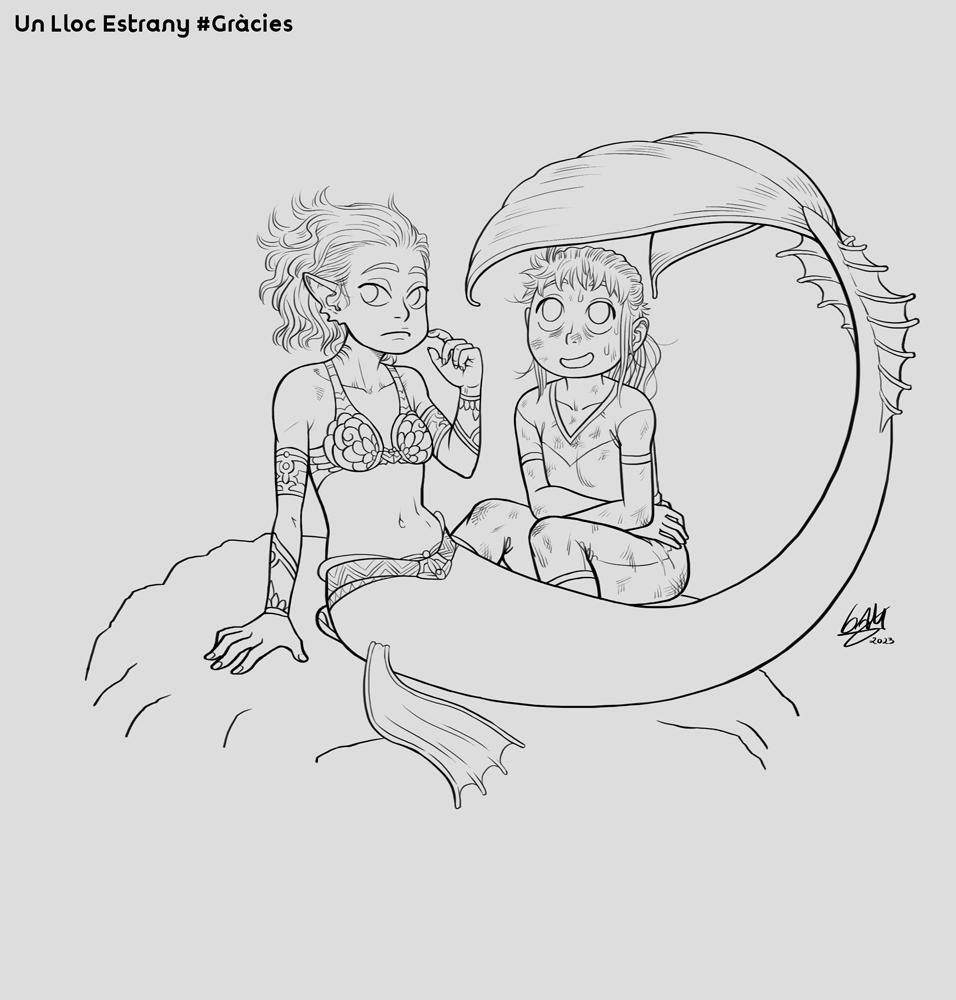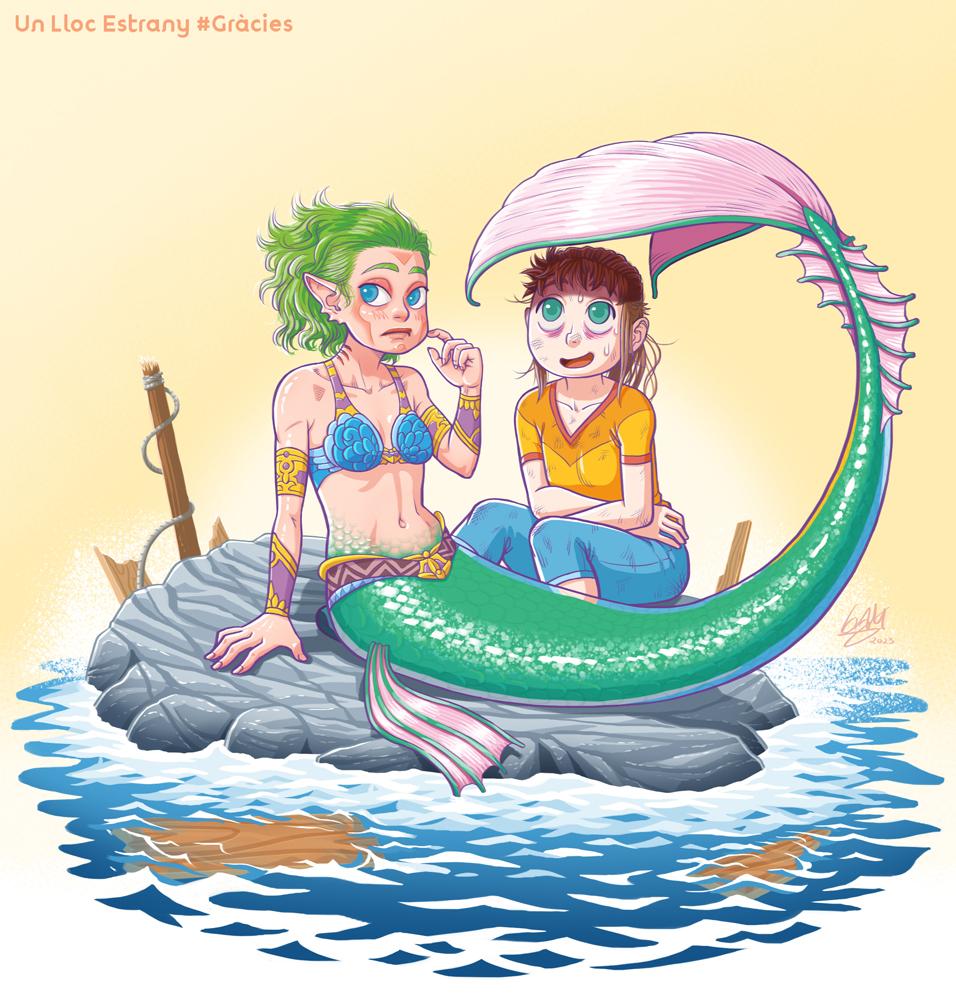 Un Lloc Estrany personatges personajes characters amics amigos friends noia chica girl sirena mermaid aventura adventure color digital