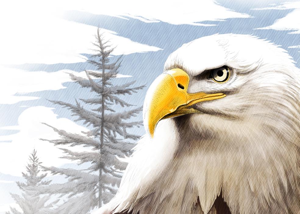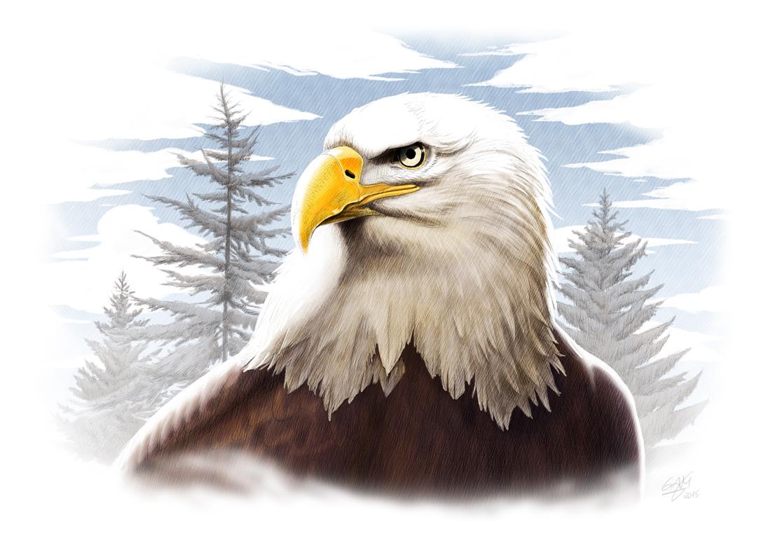 Em va servir de pràctica per a representar aquest animal tan majestuós, una Àguila calba (Pigarg americà).