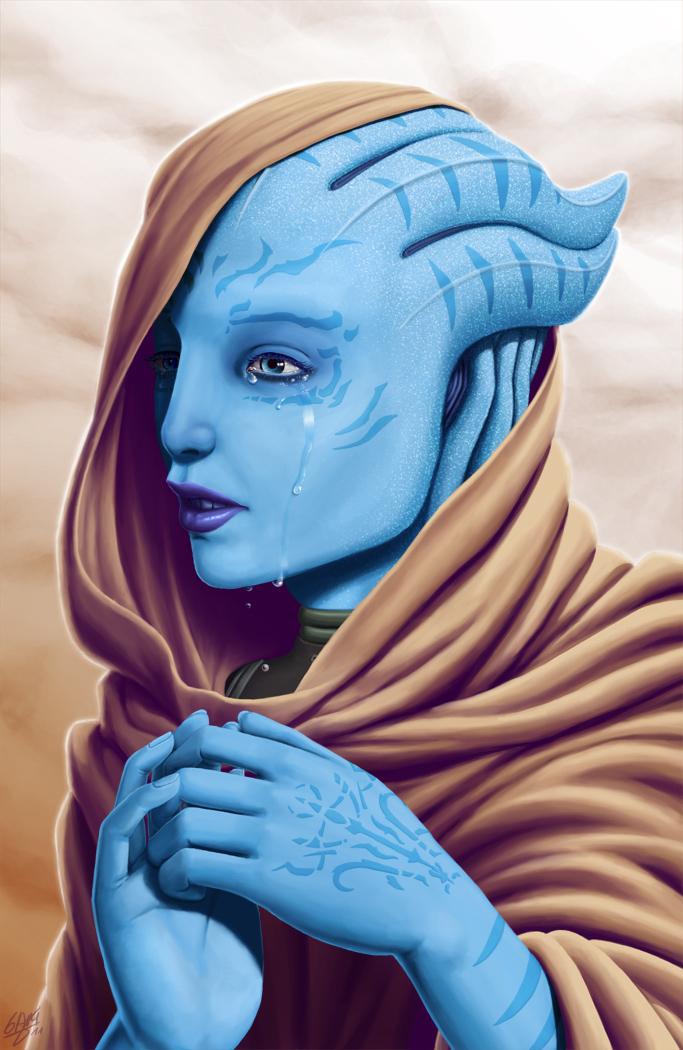 Il·lustració, del 2011, d'una Asari qualsevol. Uns personatges de la saga de videojocs Mass Effect, de la companyia Bioware (Electronic Arts).