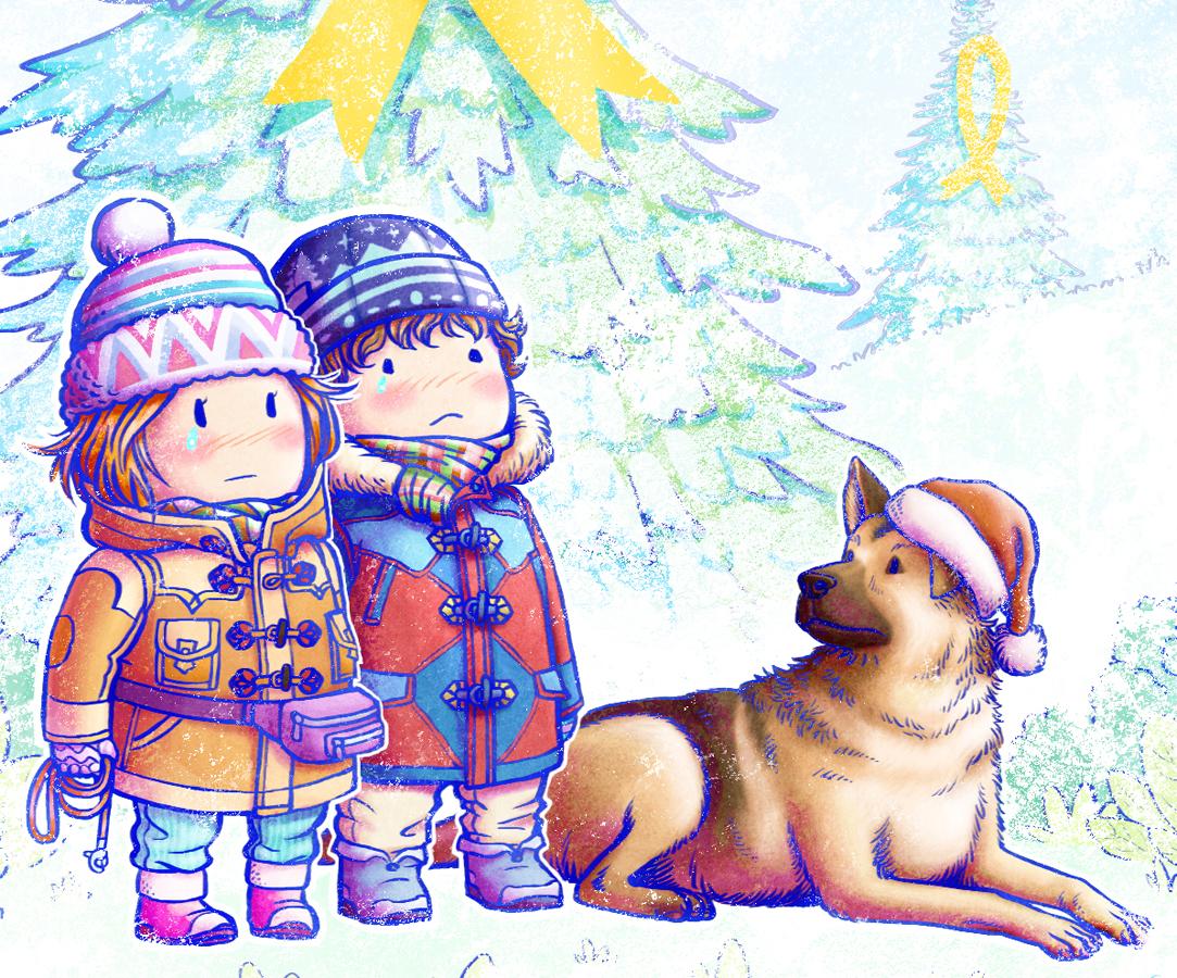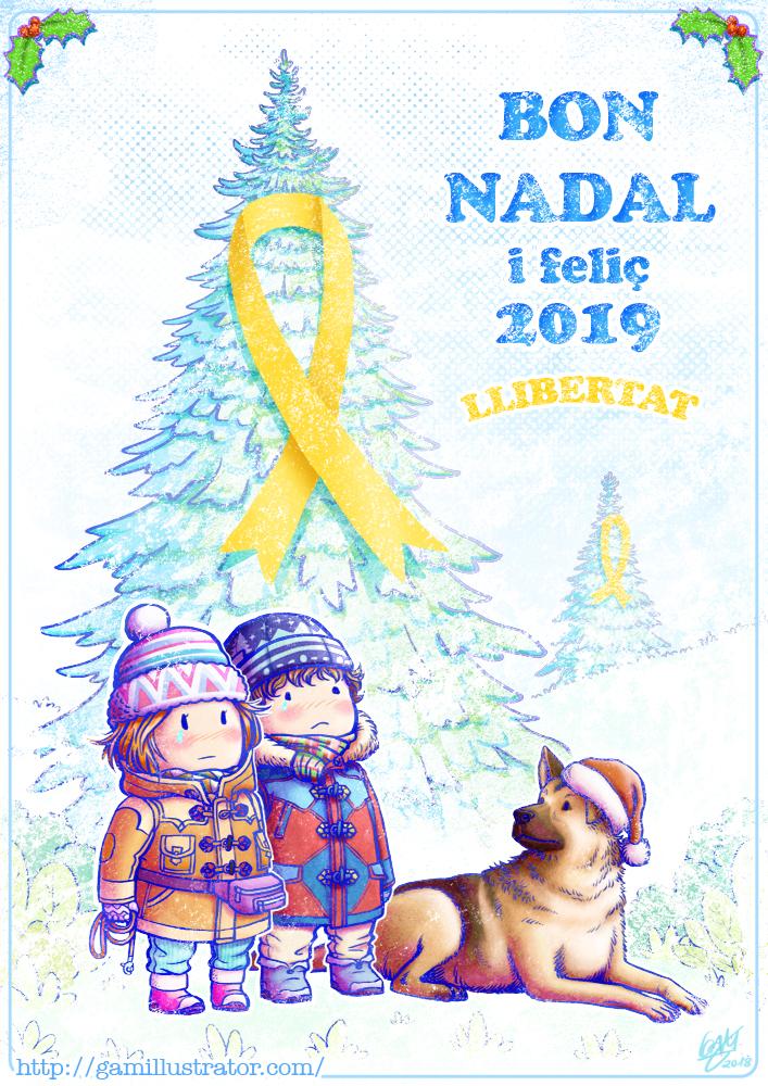 Bon Nadal Feliz Navidad Merry Christmas nen nena niño niña kids boy girl gos perro dog llaç groc llibertat