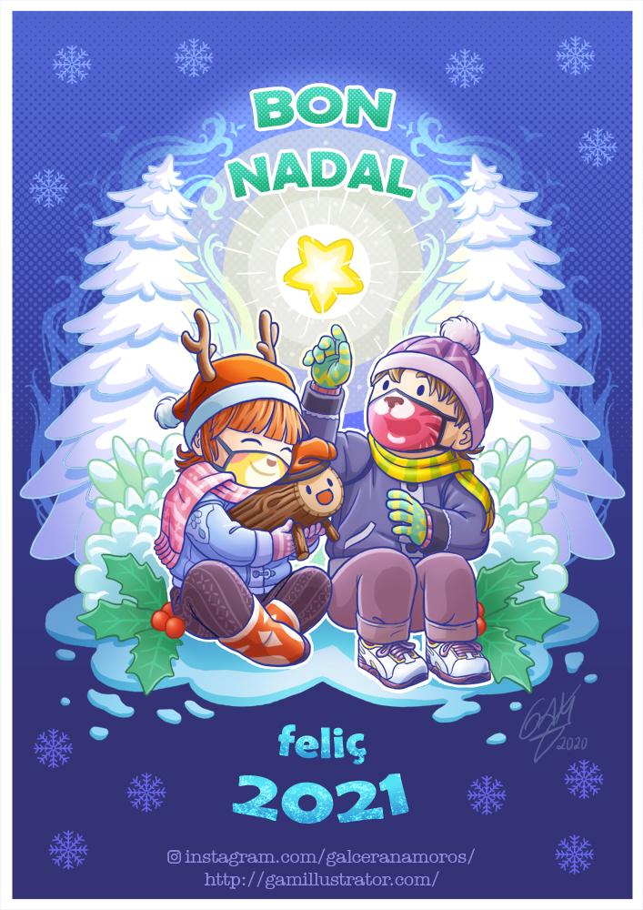 Postal realitzada l'any 2020 per enviar a la família, amics i coneguts, per desitjar un bon nadal i una feliç entrada d'any al 2021.