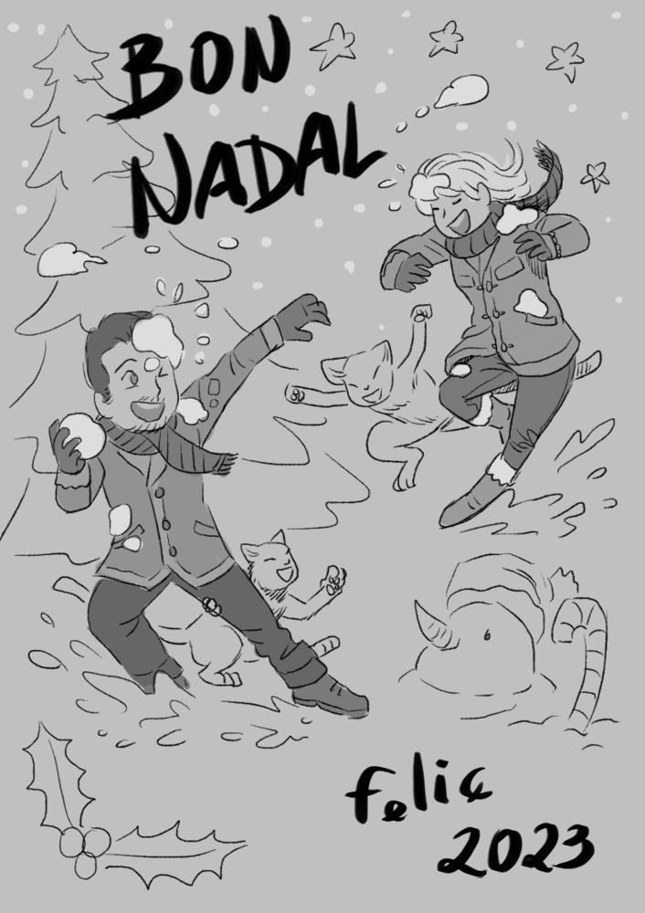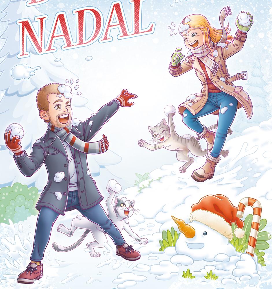 Bon Nadal Feliz Navidad Merry Christmas 2023 ninot de neu muñeco de nieve Snowman parella pareja couple gat gato cat dibuix digital dibujo digital digital drawing digital art