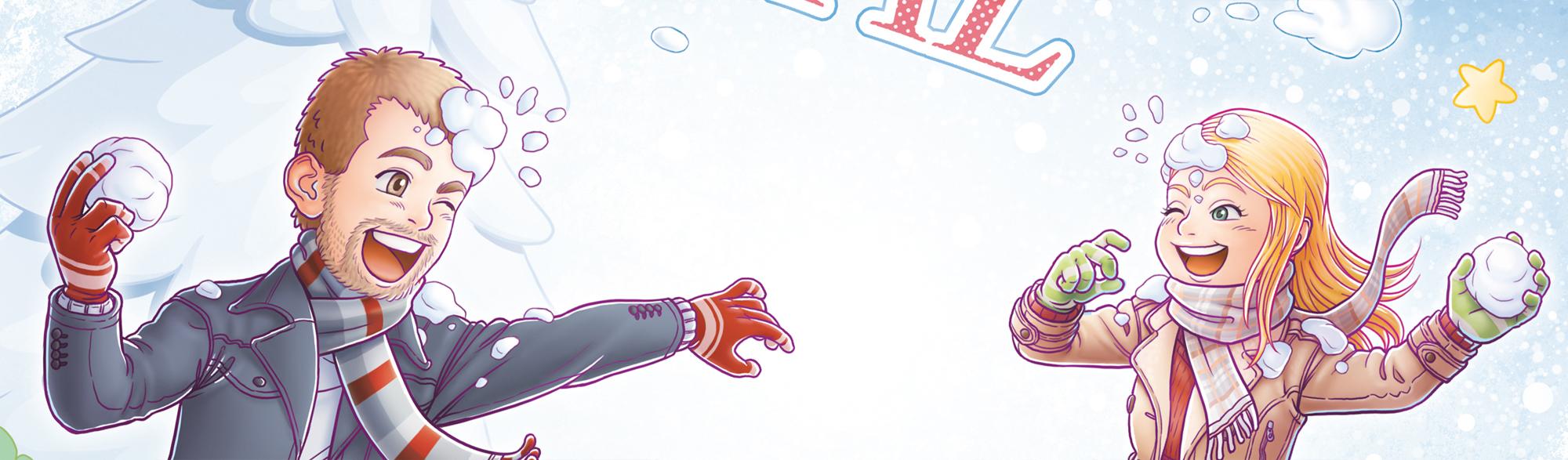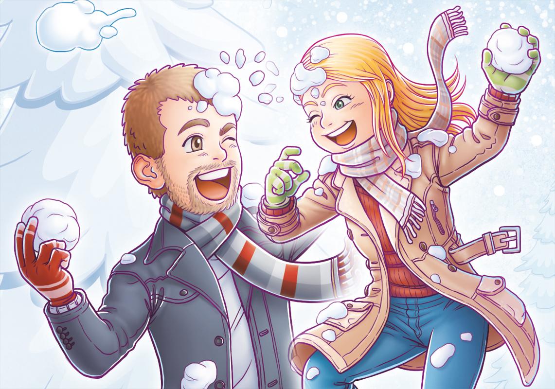 En la imatge hi surt ell, la seva dona i els seus dos gats. Em van proposar també la idea de la baralla amb boles de neu.