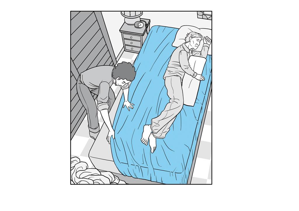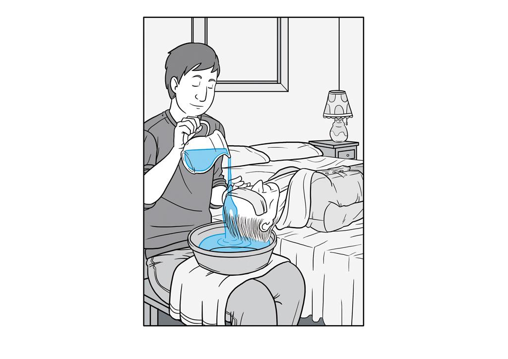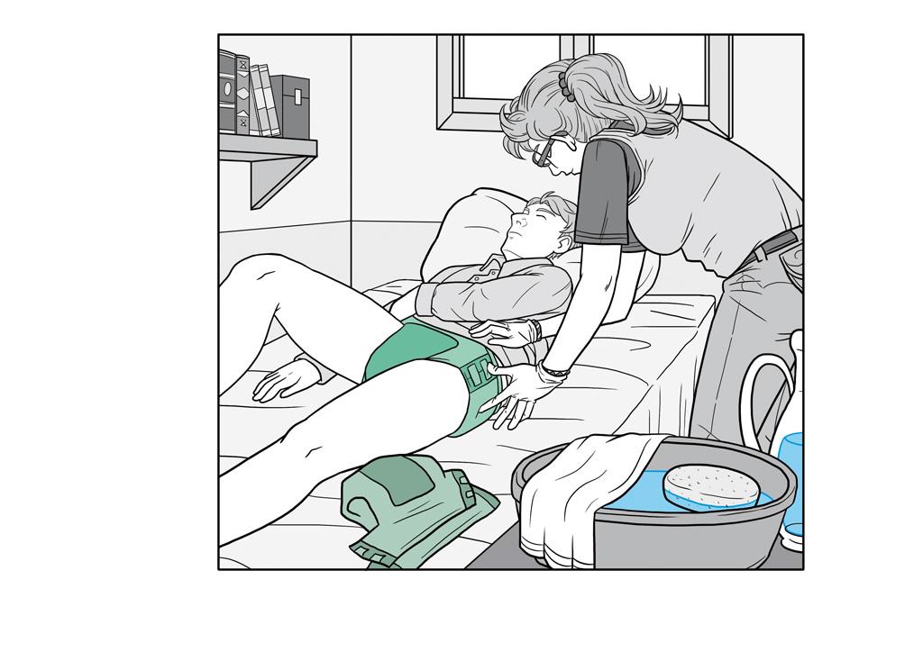 Aquestes il·lustracions mostraven la manera més adequada de mobilitzar una persona, exemples gràfics d'exercicis d'estiraments, la realització de la higiene d'un malalt i un exemple visual de les zones més sensibles d'aparició de nafres. També se'm va sol·licitar la realització d'una portada i contra portada on es representés l'essència del treball.