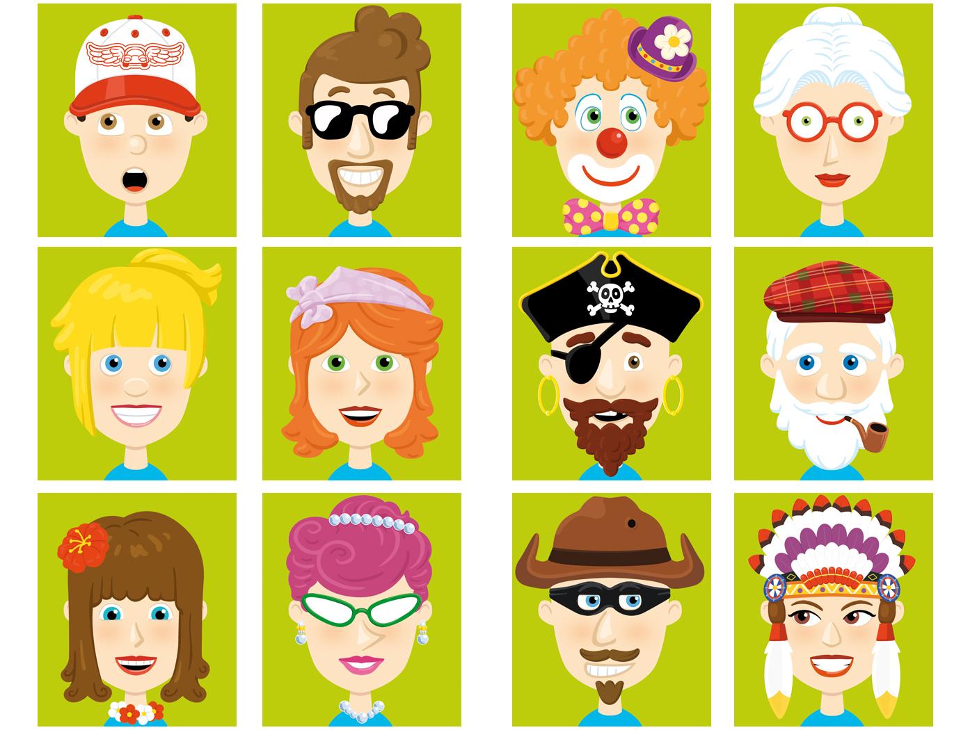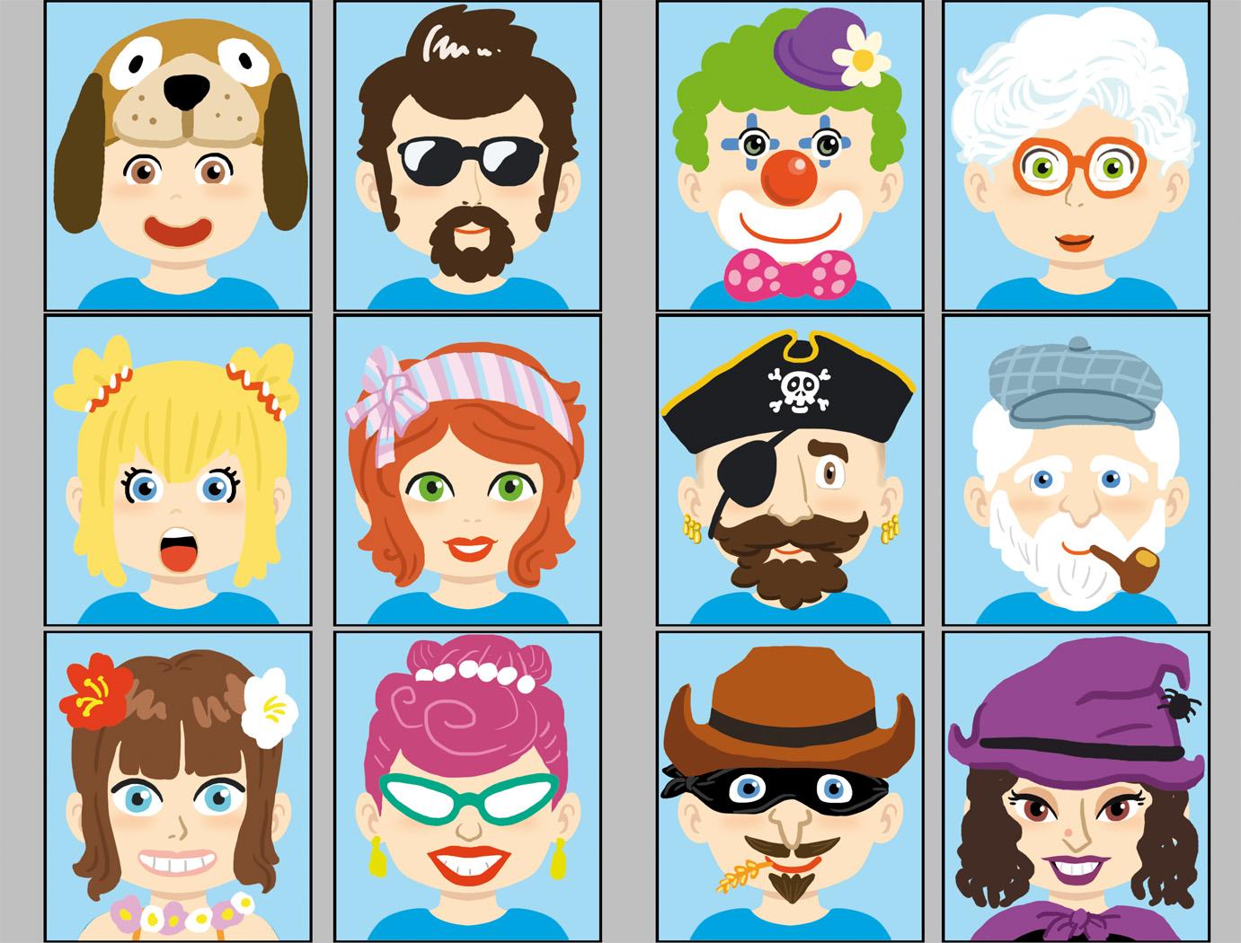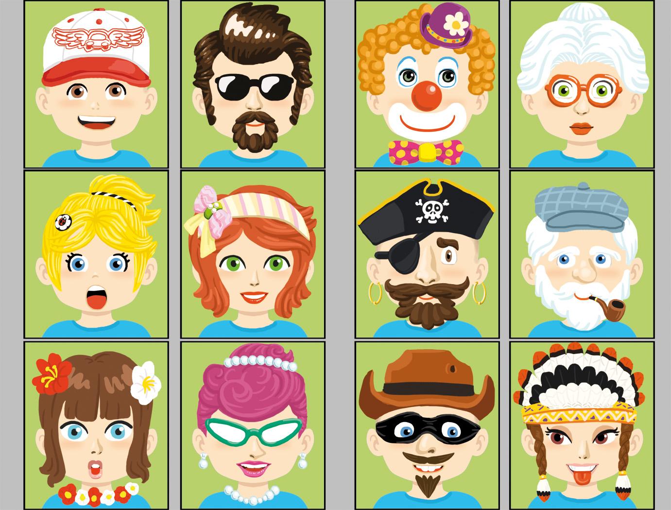 Encàrrec d'Andreu Toys (http://www.andreutoys.com/) del 2013, per realitzar 12 cares de personatges per jugar a crear cares divertides, gràcies a tenir tots els elements en peces independents, com el nas, els ulls, boques,...