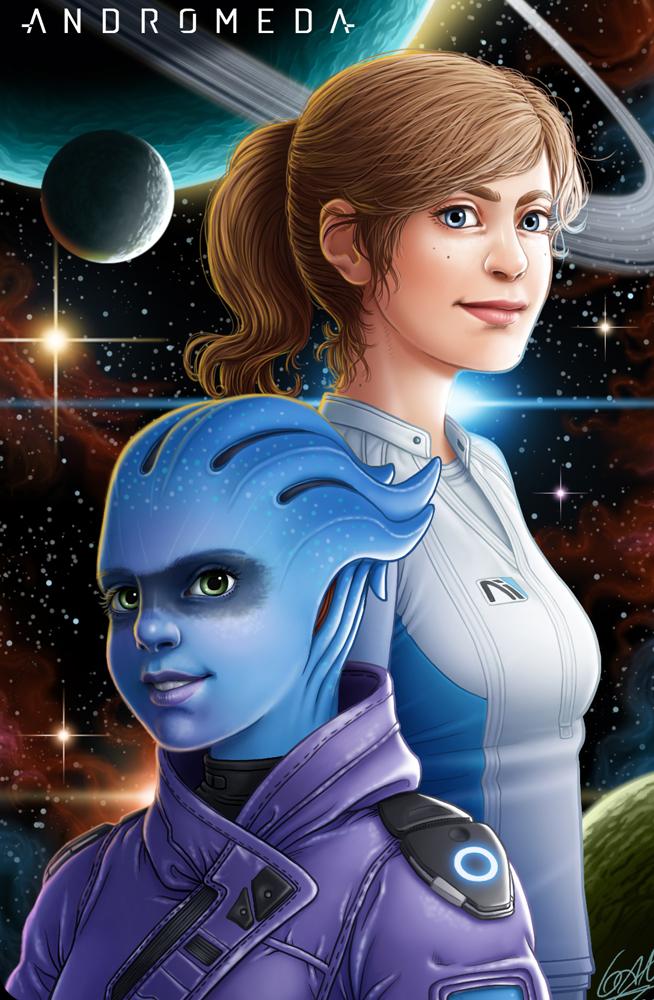 Mass Effect Andromeda Sara Ryder Peebee fanart BioWare espai espacio space planetes planetas planets estrelles estrellas stars
