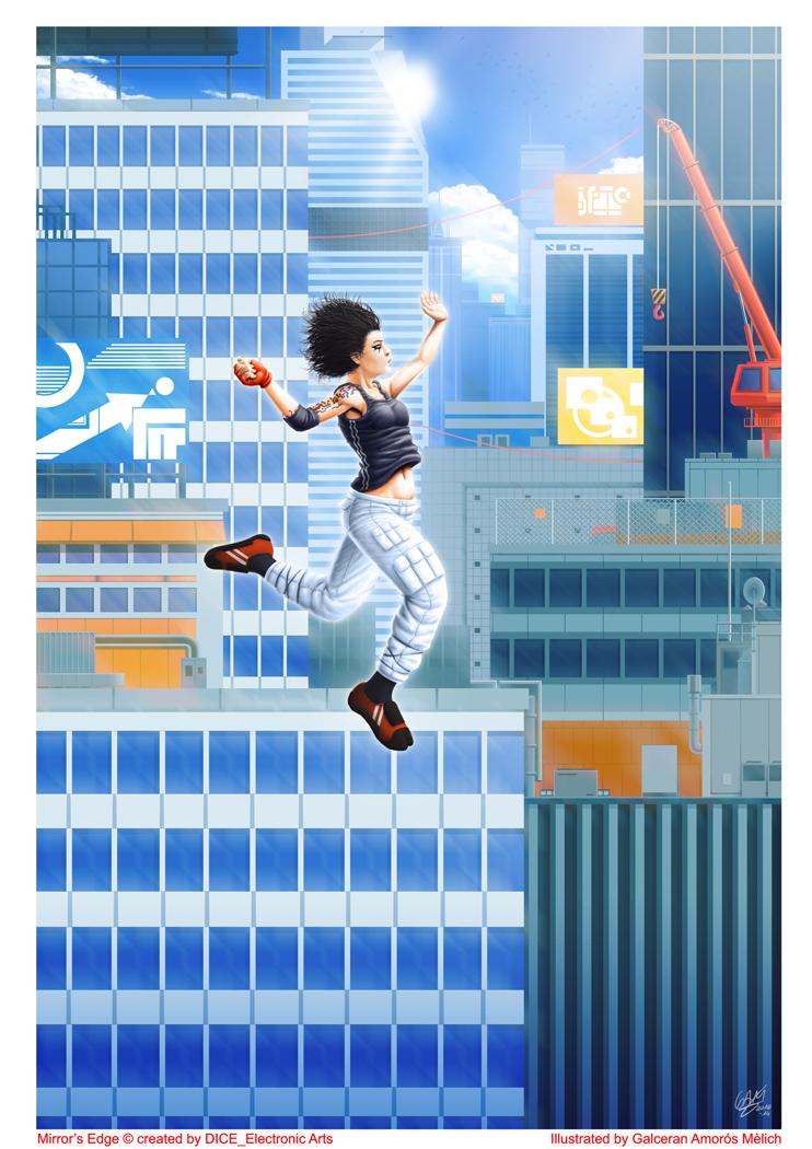 Dibuix representant, Faith, la protagonista del videojoc Mirror's Edge. De la companyia DICE d'Electronic Arts.