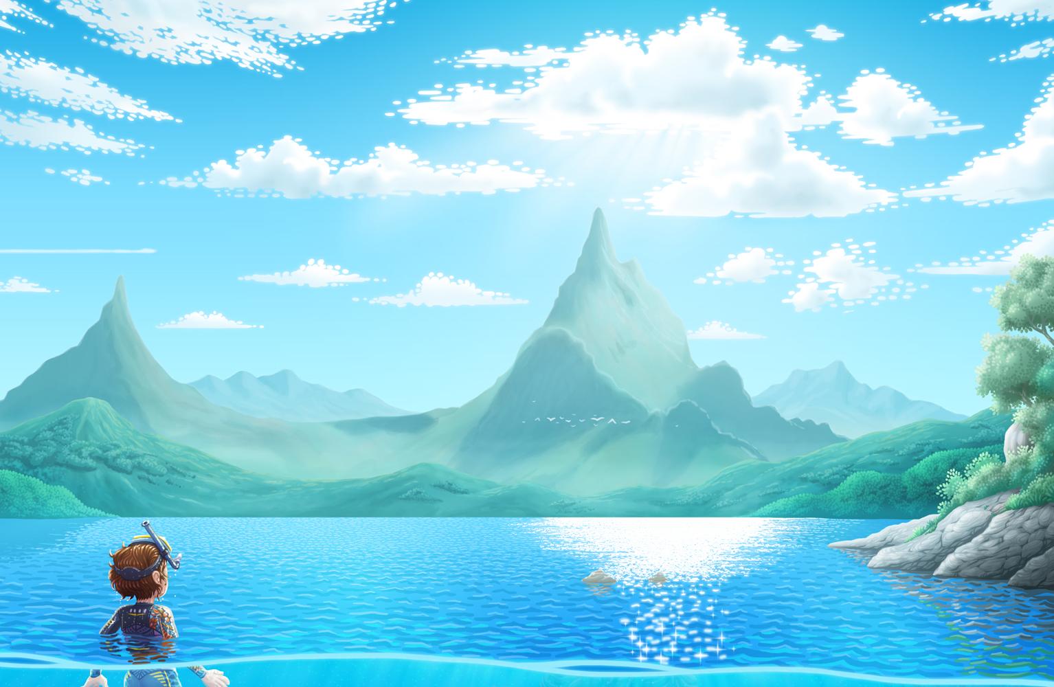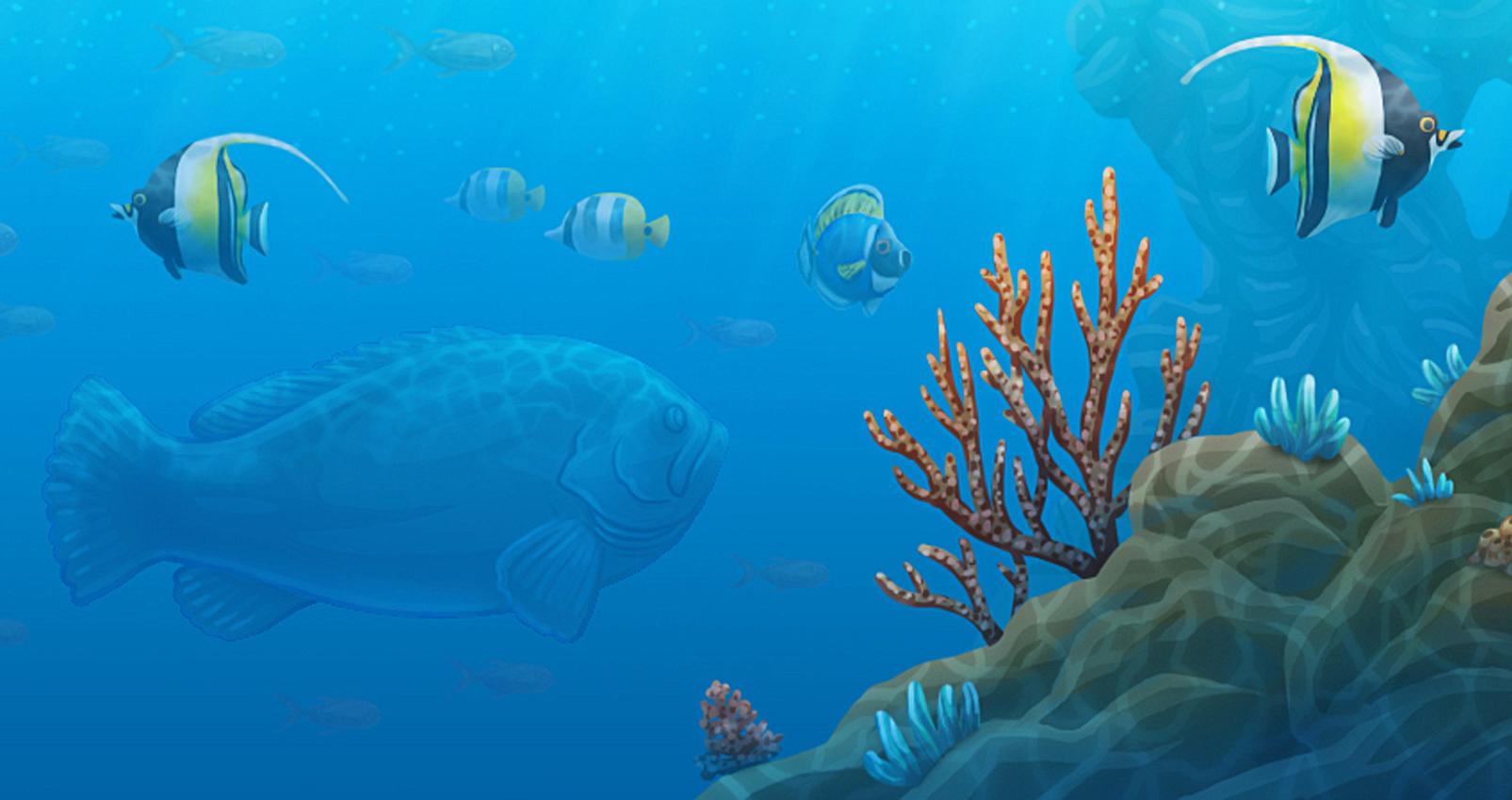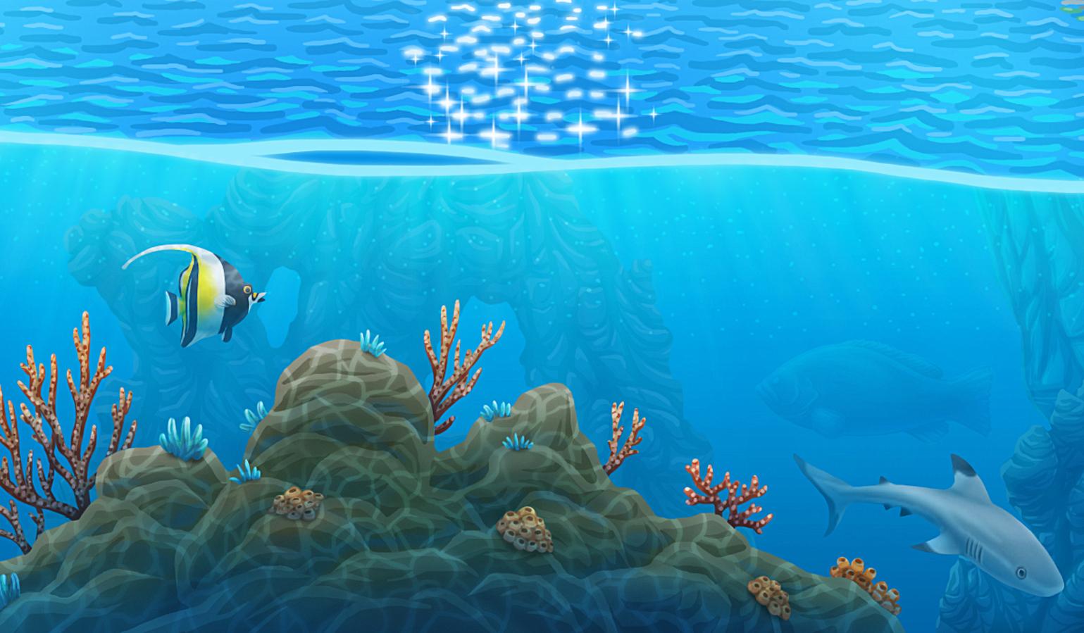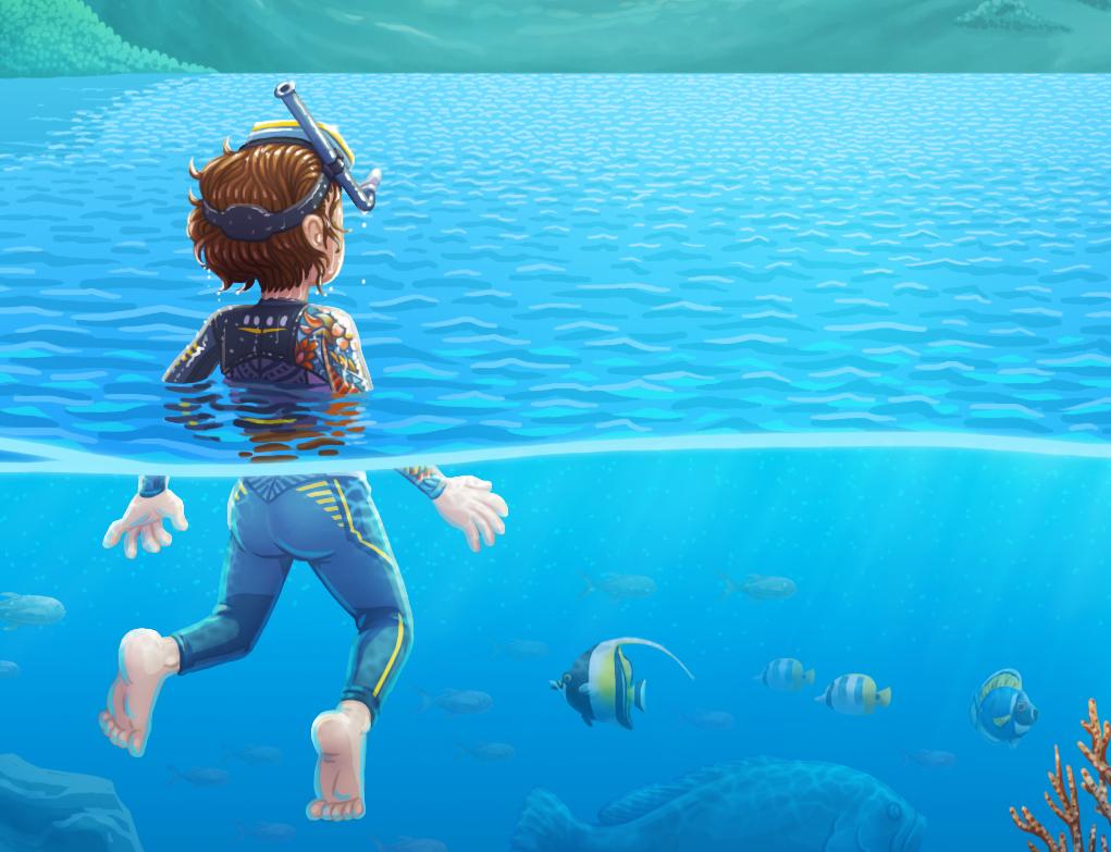 Il·lustració feta l'any 2020 per practicar la llunyania reflexos de l'aigua i el fons marí.
