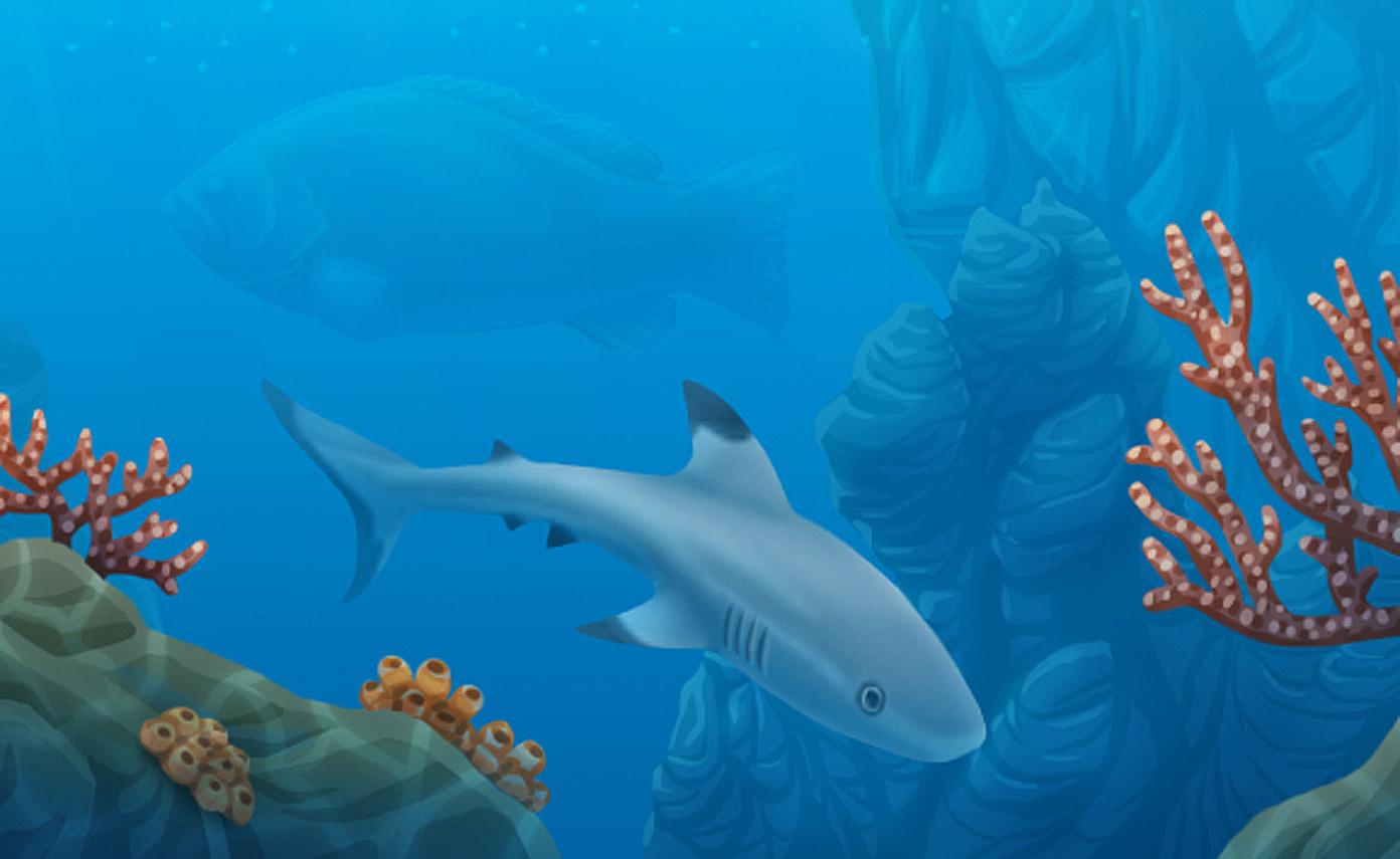 paisatge paisaje landscape fons marí fondo marino seabed peixos peces fish tauró tiburón shark noia chica girl mar sea cel cielo sky núvols nubes clouds