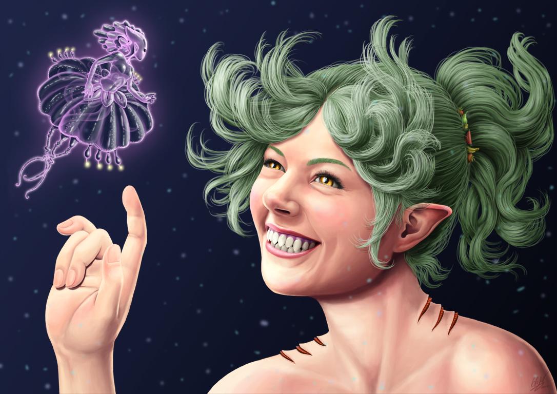 Il·lustració del 2012 representant una sirena de l'obra personal Moonlit World.