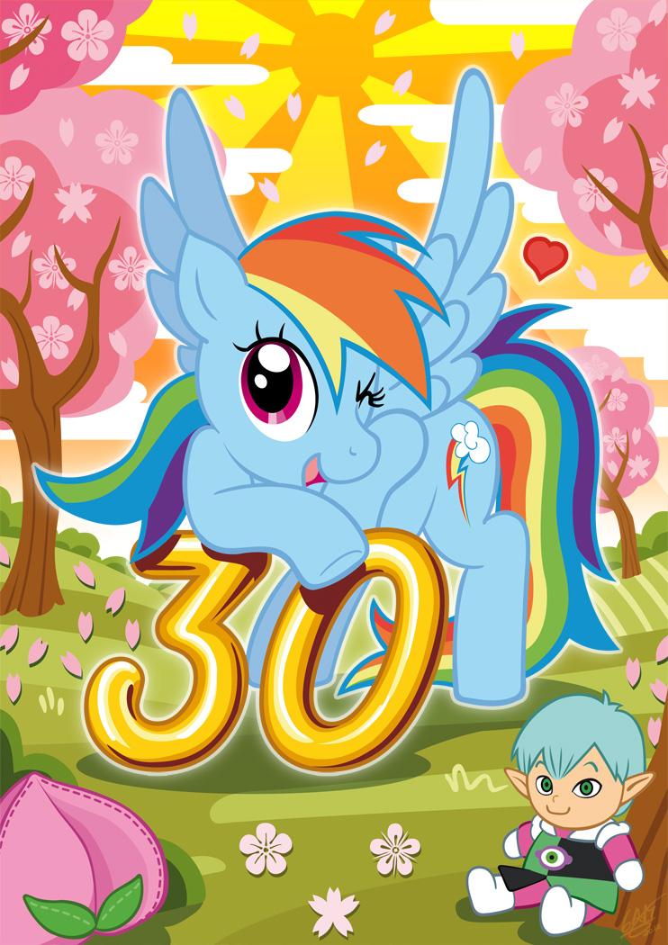 Fet al 2012 per a una amiga, l'actriu de doblatge (Eva Ordeig), que interpreta en castellà a la Rainbow Dash i en català a en Noi.