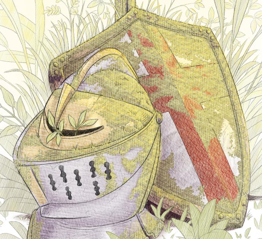 Sant Jordi rosa rose escut escudo shield espasa espada sword casc casco helmet