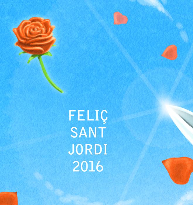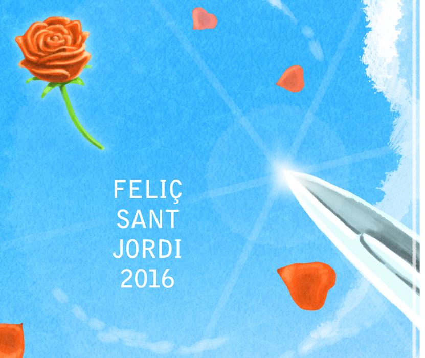 Postal realitzada al 2016 per enviar a la família, amics i coneguts, per desitjar un feliç Sant Jordi.