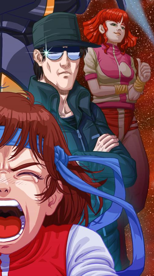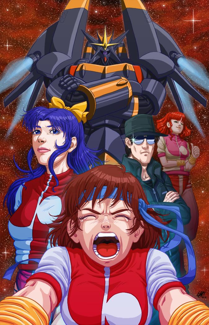 Il·lustració, del 2012, per representar el conjunt de personatges principals de la gran sèrie Top wo nerae! Gunbuster, obra de GAINAX al 1988.