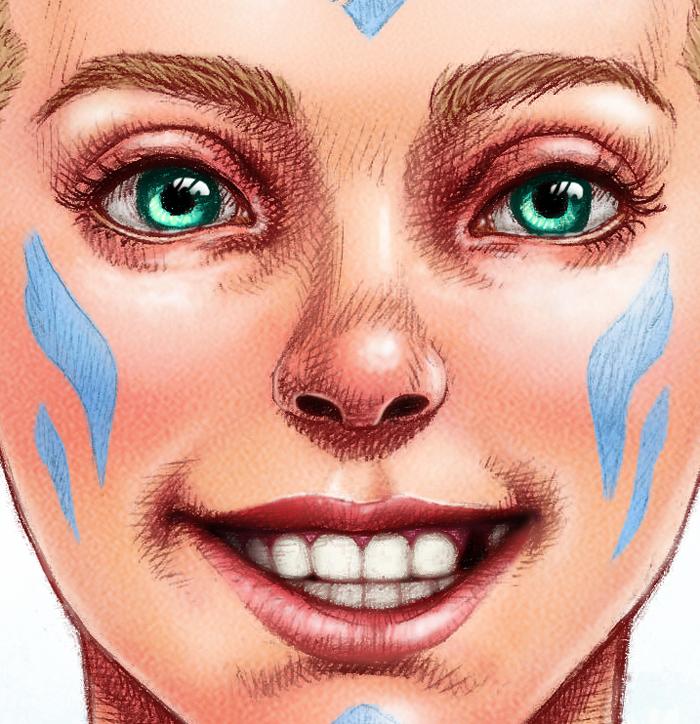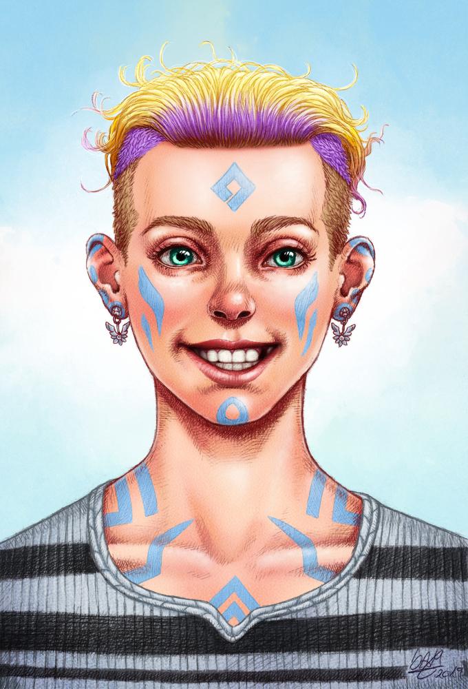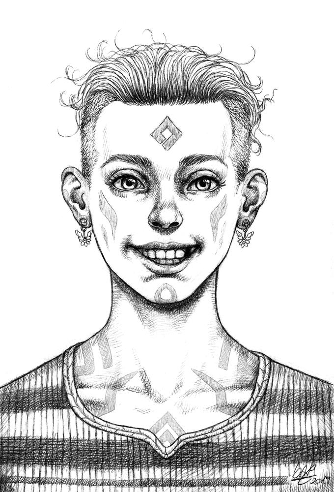 un lloc estrany cara face retrat retrato portrait somriure sonrisa smile personatge personaje character noia chica girl desdentada toothless tattoo cabells de colors cabellos de colores colored hair