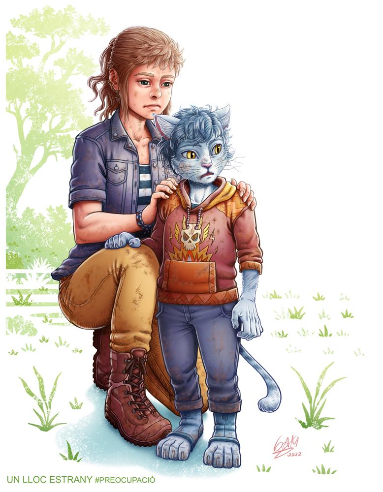 Il·lustració feta l'any 2022 per representar dos personatges de l'obra personal "Un Lloc Estrany".