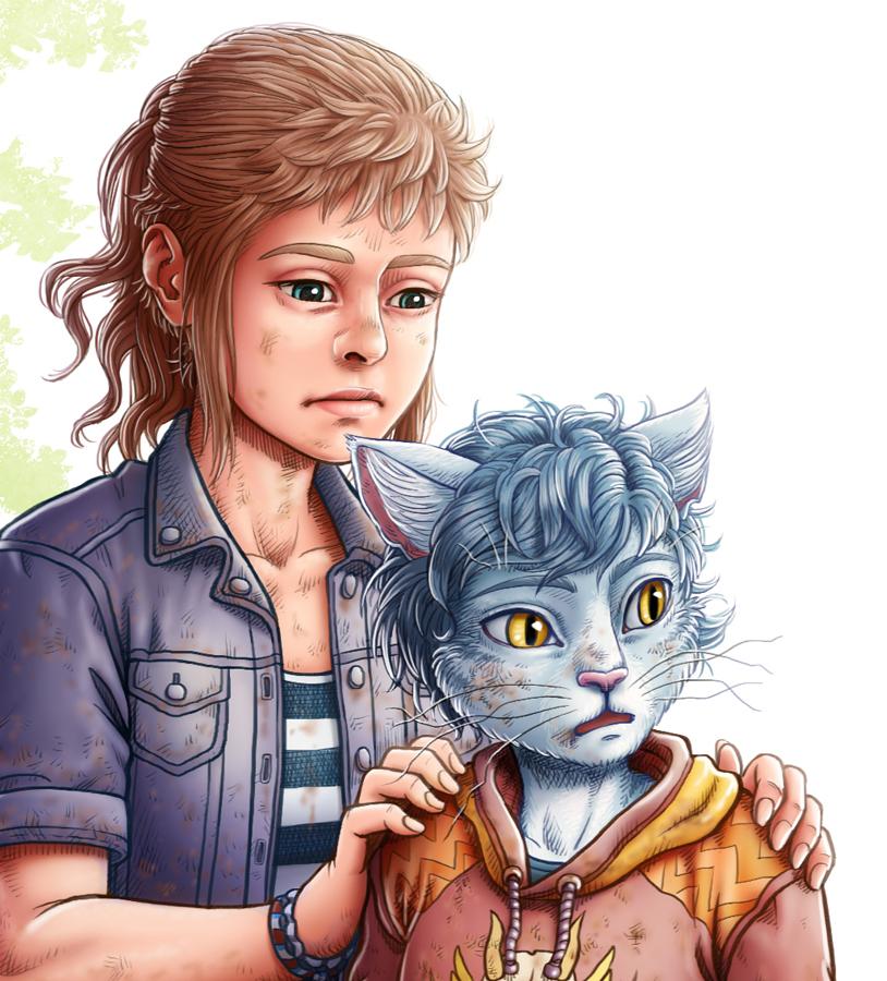 Un Lloc Estrany personatges personajes characters amics amigos friends noia chica girl noi gat chico gato cat boy color digital wacom