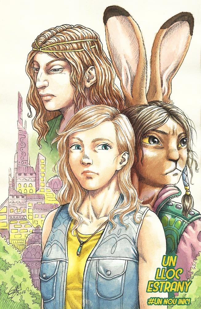 un lloc estrany amigues amigas friends noia chica girl noia conill chica conejo bunny rabbit girl aventura adventure aquarel·la acuarela watercolor