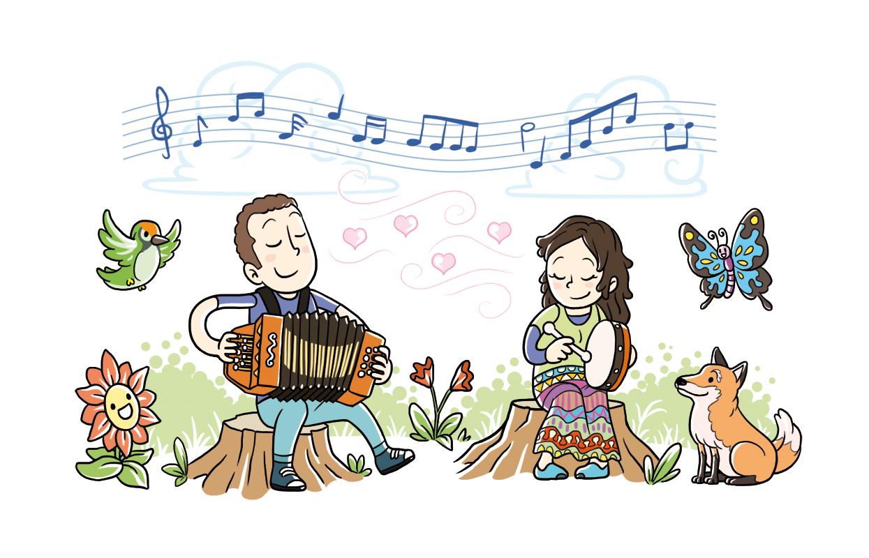 Encàrrec de 2016 per a crear una sèrie de cinc imatges per a reproduir-les en unes rajoles, com si fos una auca (a color) i per a unes tasses (en blanc i negre). Els personatges són una parella que espera una criatura i la idea era de representar-los en diferents escenes en algunes de les aficions que tenen.