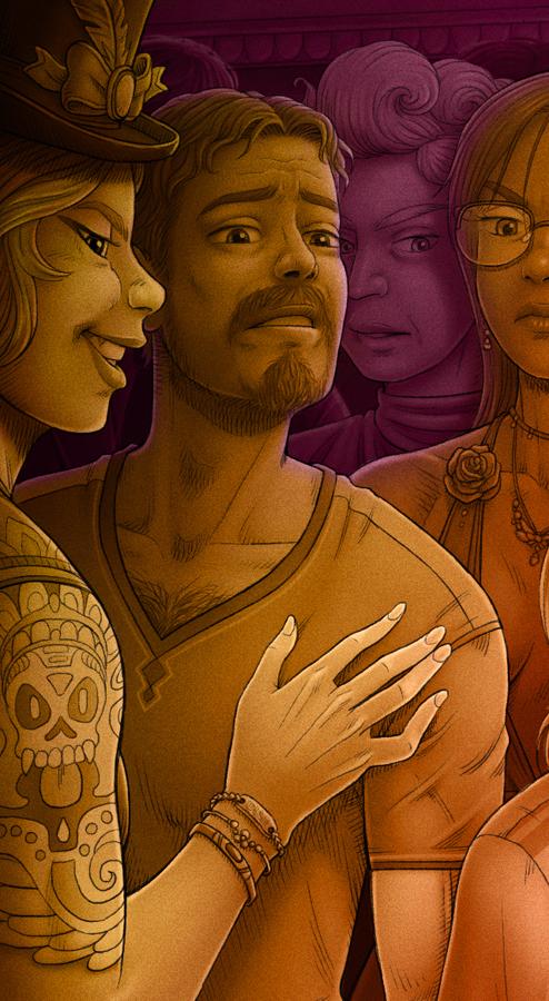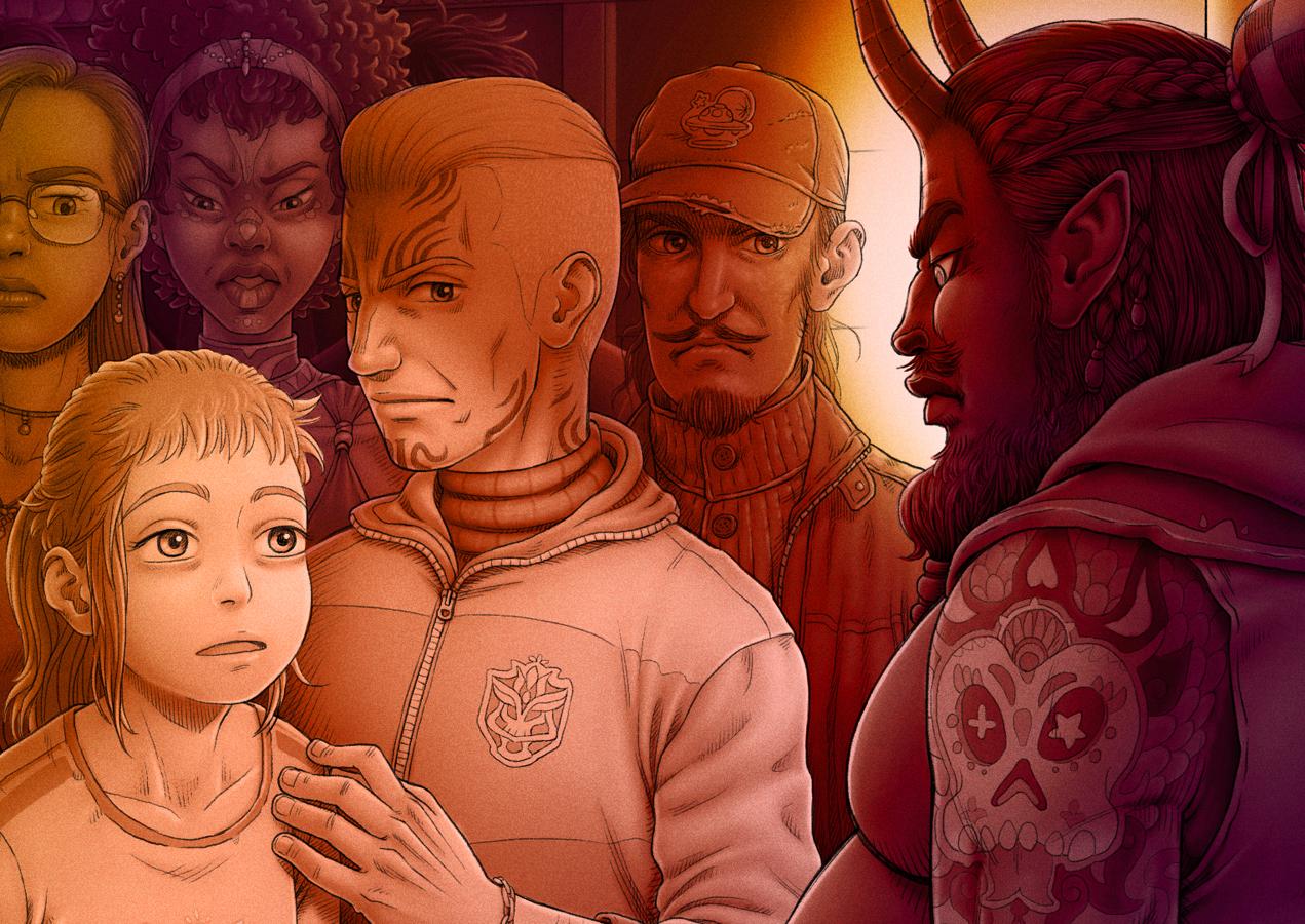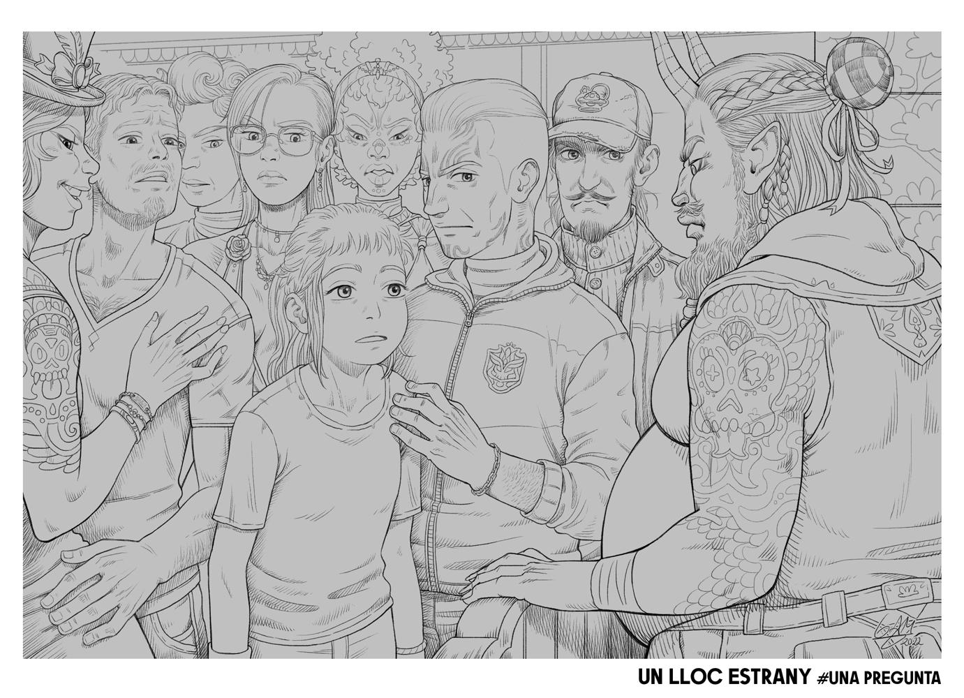 Un Lloc Estrany personatges personajes characters amics amigos friends noia chica girl home hombre man color digital dimoni demonio devil