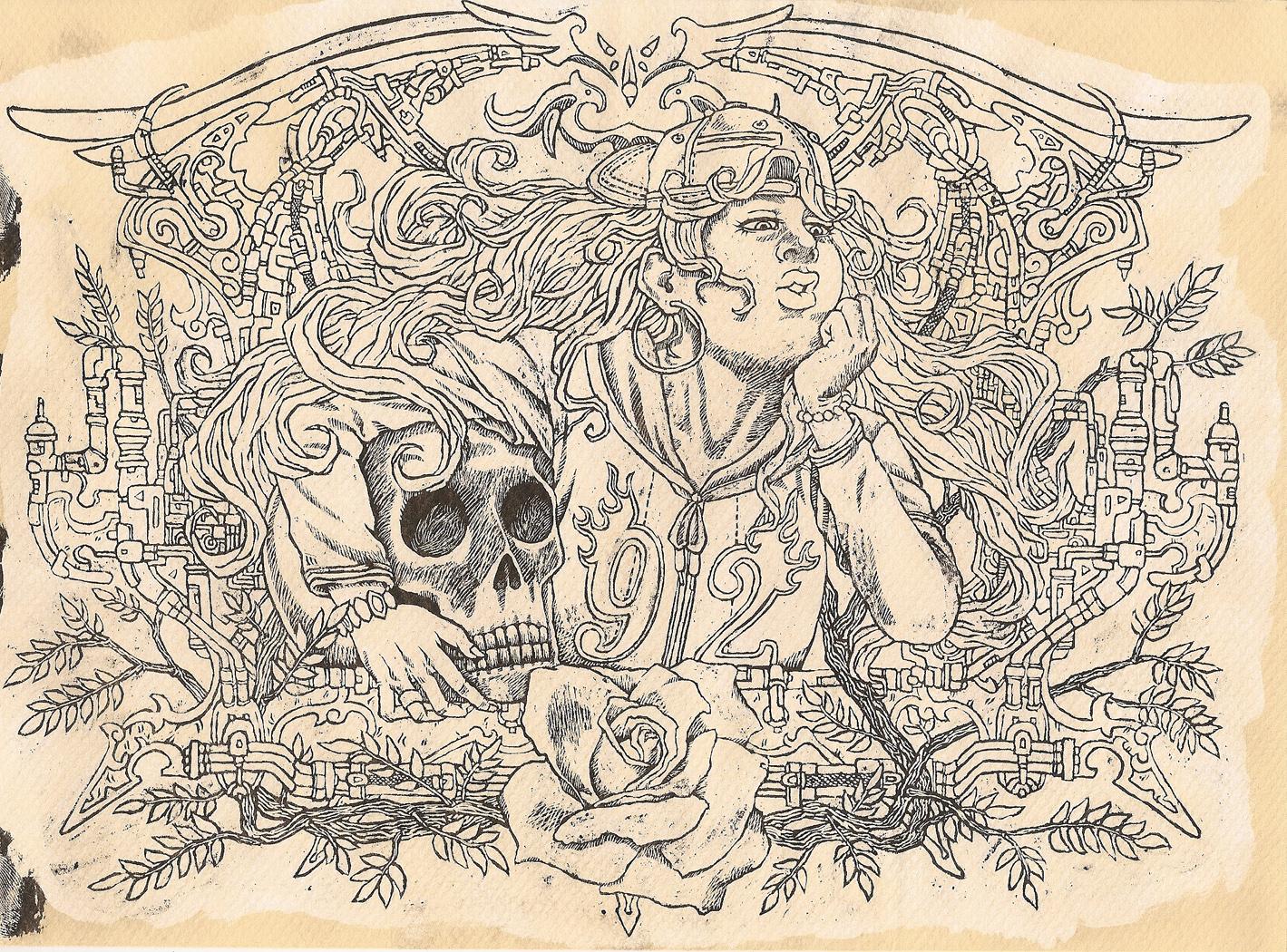 Il·lustració del 2008, pensada originalment com a una idea per a samarreta. Fent servir la tècnica de la reserva i el color pla en digital.