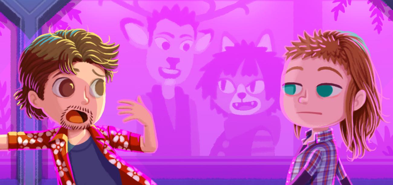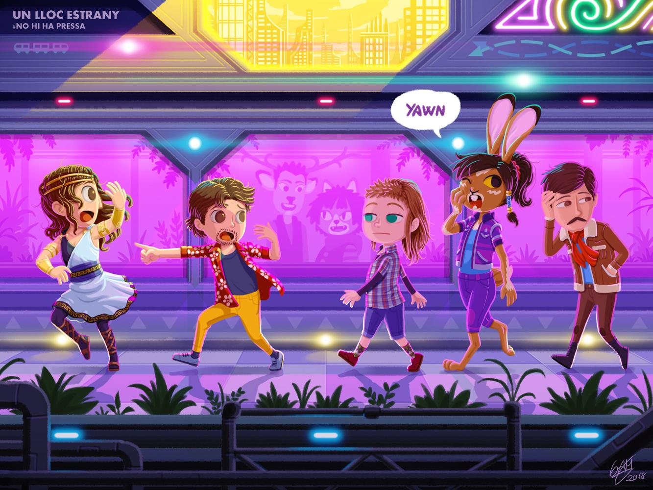 Il·lustració del 2018 representant uns personatges de l'obra personal "Un lloc estrany".