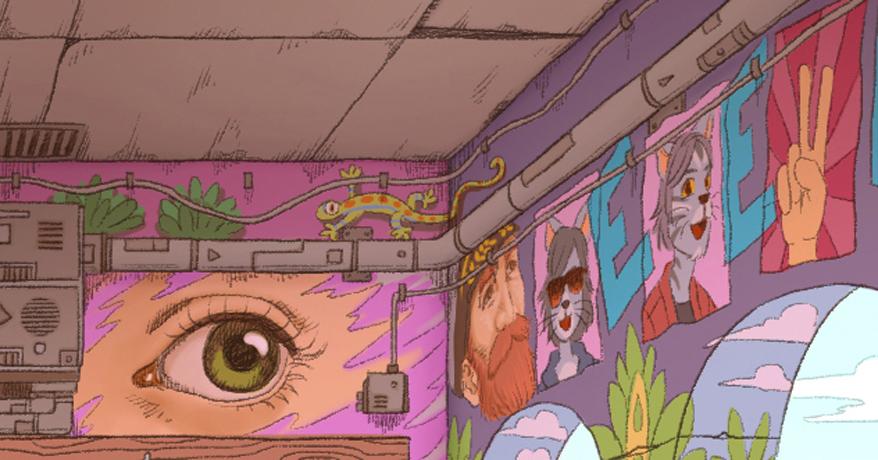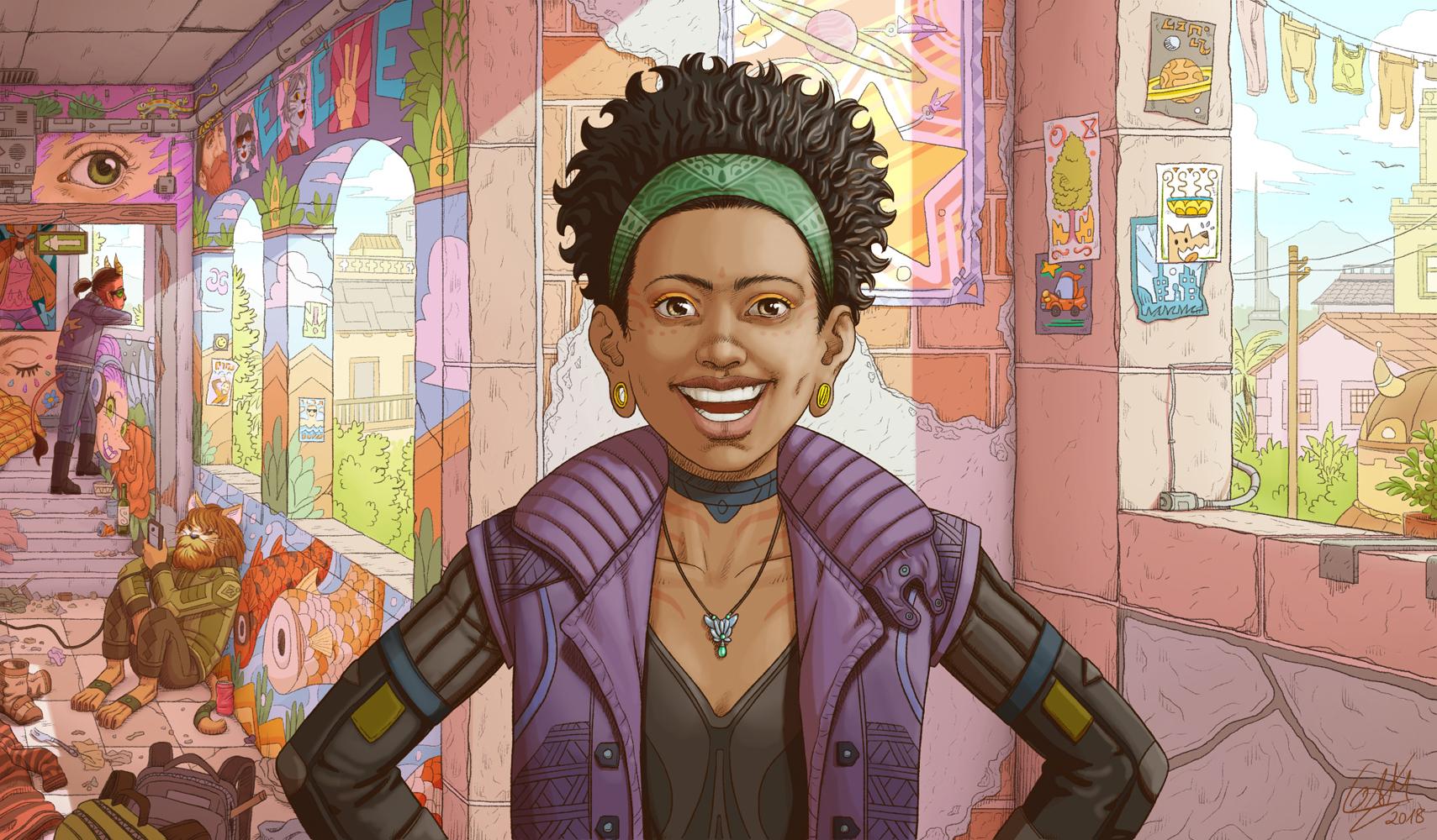un lloc estrany noia chica girl afroamericana African American girl feliç feliz happy somriure sonrisa smile pintures paret pinturas pared wall paintings