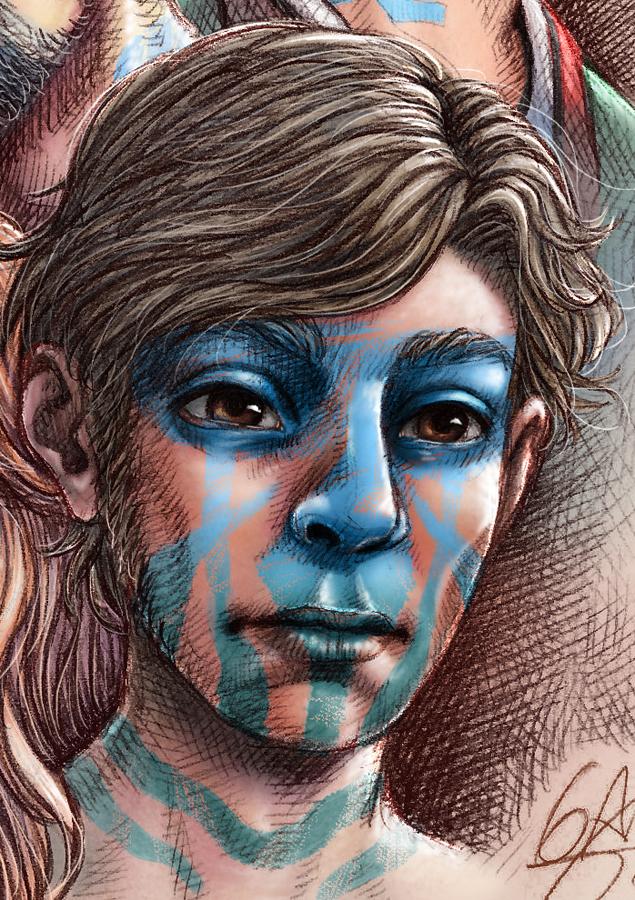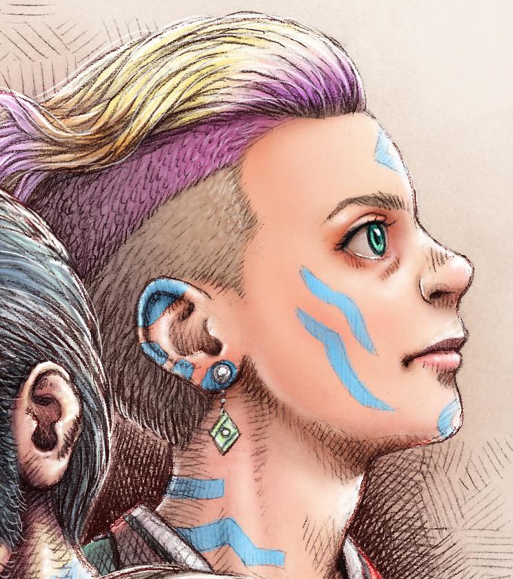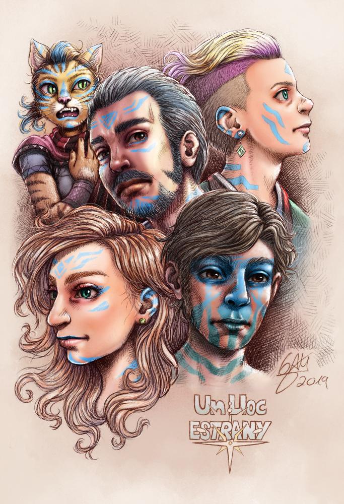 Il·lustració feta l'any 2019 amb personatges de l'obra personal "Un lloc estrany".