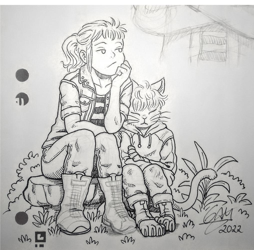 Il·lustració feta l'any 2022 per representar un moment de dos personatges de l'obra personal "Un Lloc Estrany".