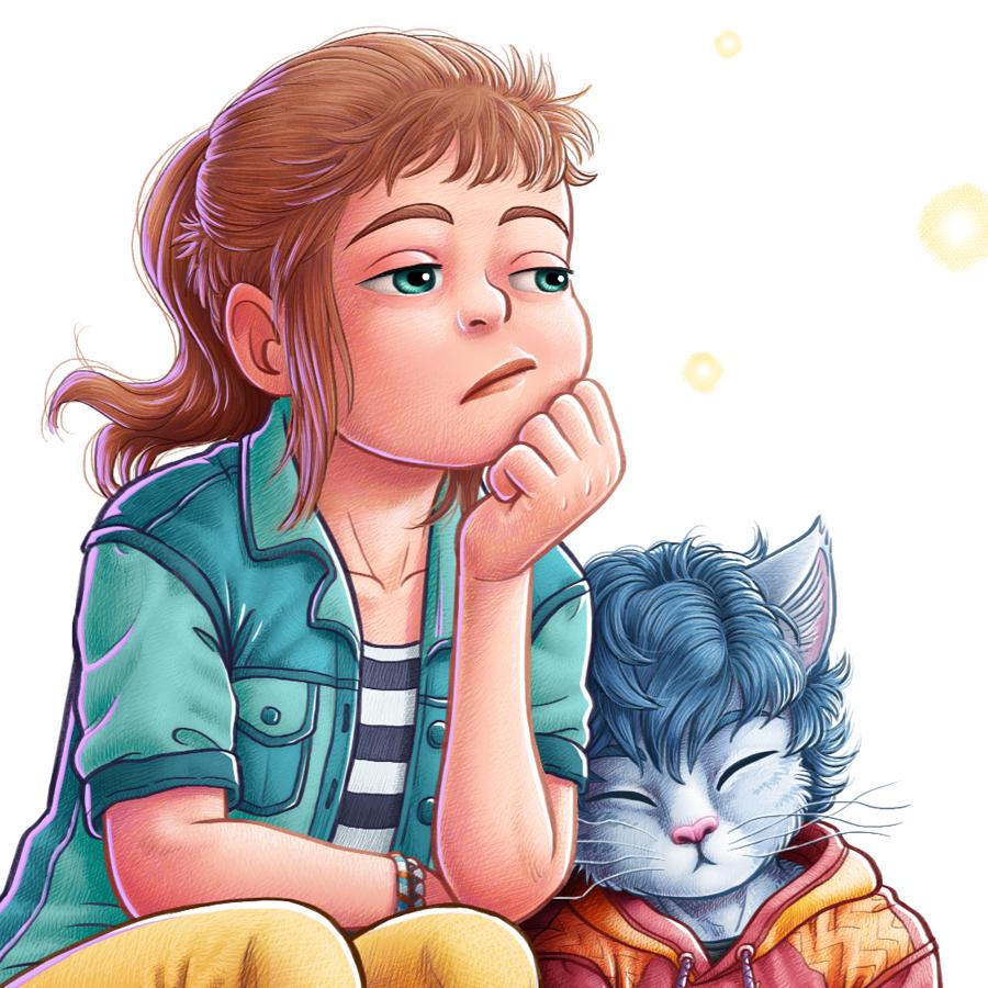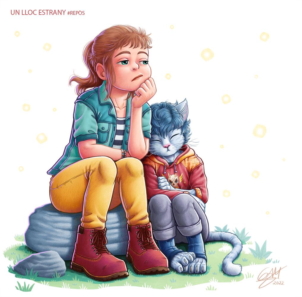 Un Lloc Estrany personatges personajes characters amics amigos friends noia chica girl nen gat niño gato boy cat color digital