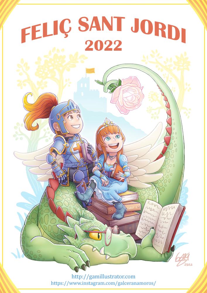 Sant Jordi 2022 princesa cavaller drac rosa llibre princesa caballero dragón rosa libro princess knight dragon rose book senyera catalana bandera catalana Catalan flag