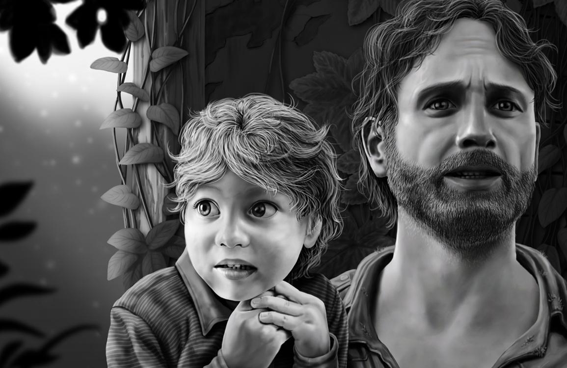 Il·lustració, de 2014, on hi represento uns personatges ficticis del videojoc The Last of US, de la companyia Naughty Dog.