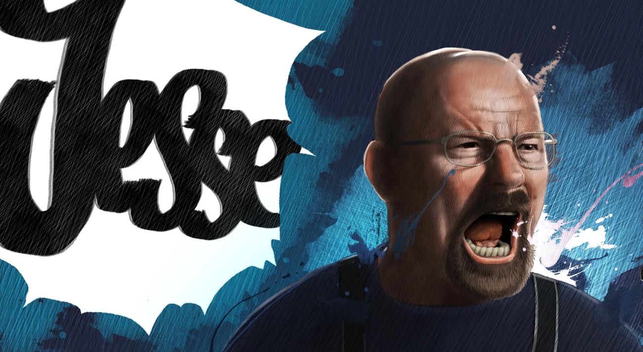 Il·lustració de 2015 per a representar una escena de la sèrie de TV, Breaking Bad amb en Bryan Cranston interpretant en Walter White.