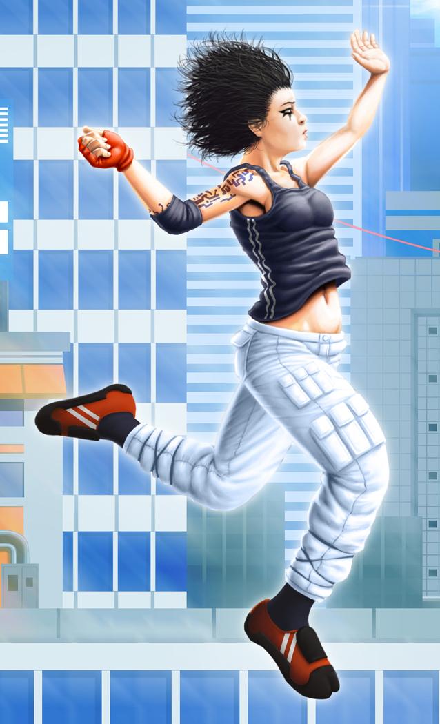 Dibuix representant, Faith, la protagonista del videojoc Mirror's Edge. De la companyia DICE d'Electronic Arts.