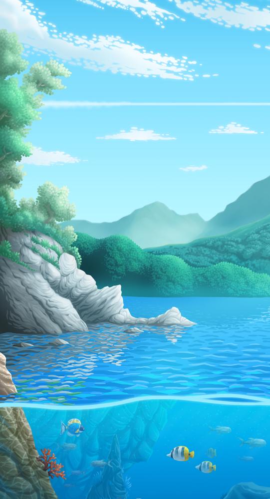 Il·lustració feta l'any 2020 per practicar la llunyania reflexos de l'aigua i el fons marí.
