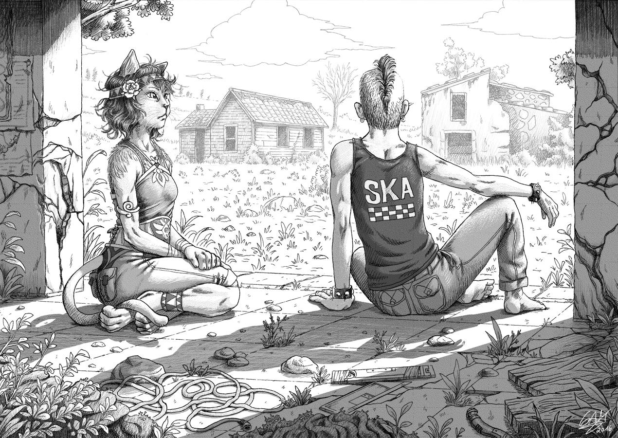 Exercici de 2016 per a practicar amb les trames mecàniques, inspirant-me en com es fan servir a vegades a alguns còmics manga.