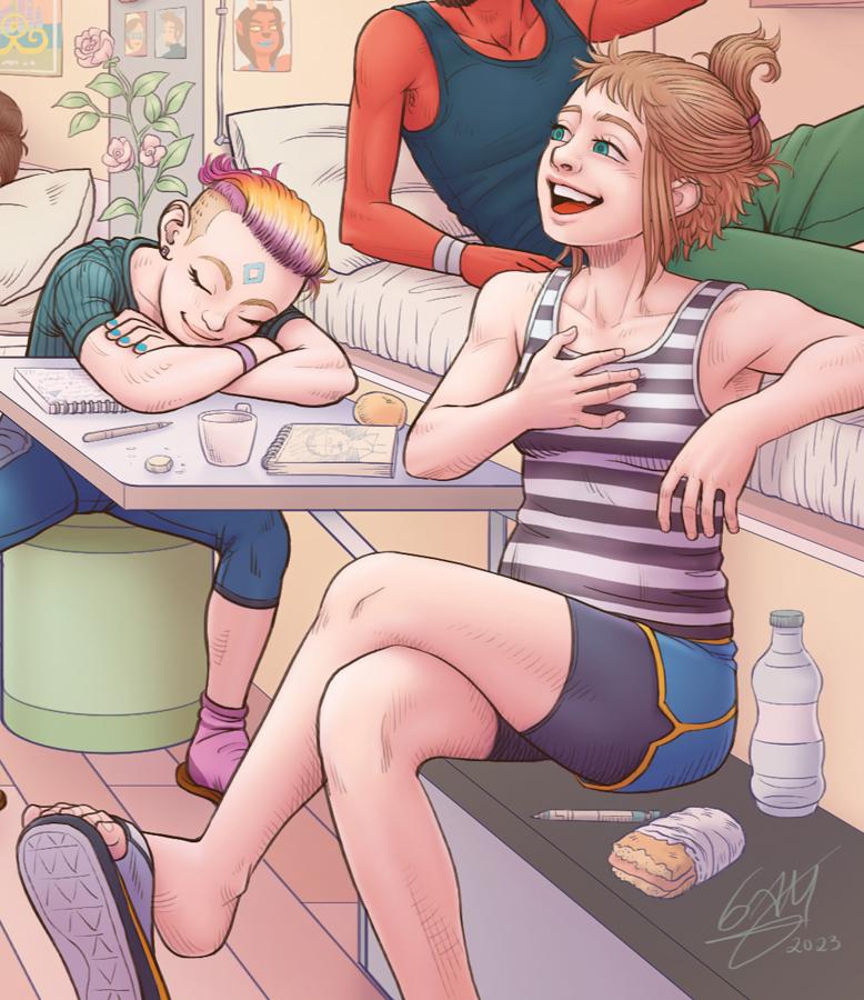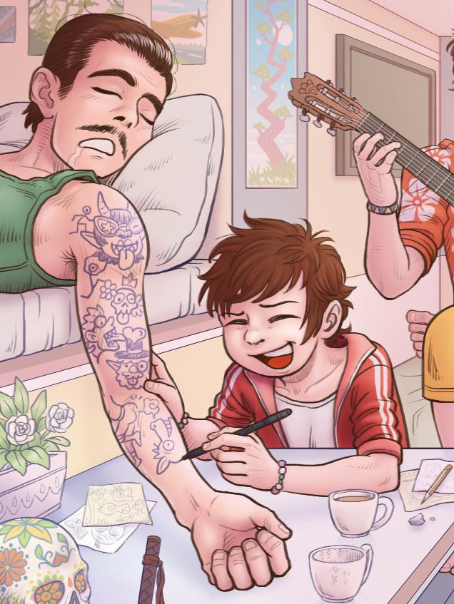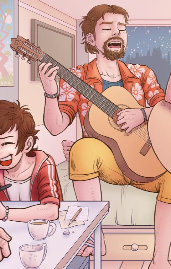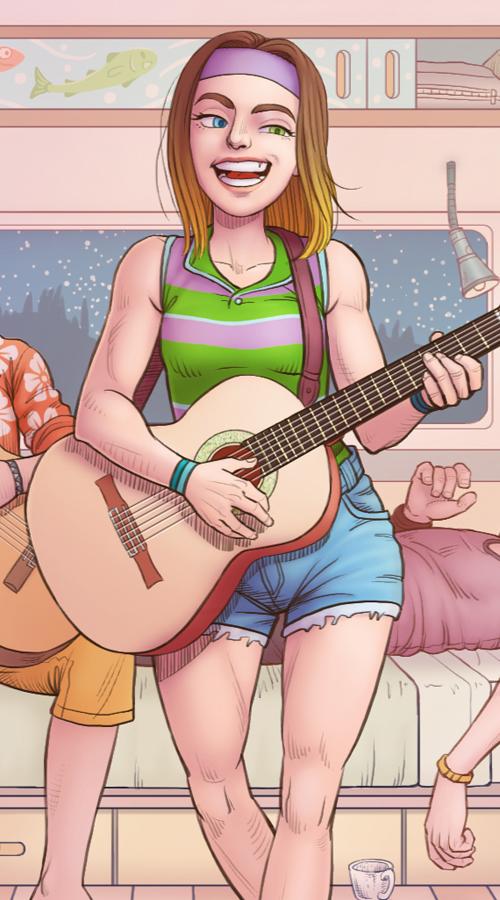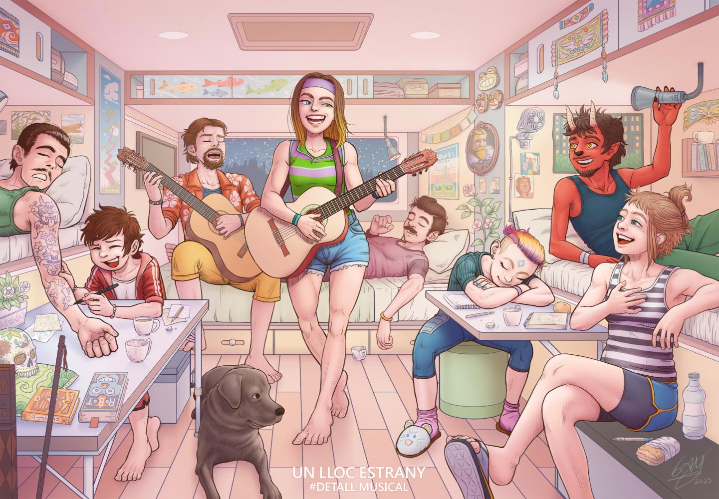 Un Lloc Estrany personatges personajes characters amics amigos friends noia chica girl home hombre man color digital noi dimoni chico demonio devil boy gos perro dog animals animales guitarra guitar música music