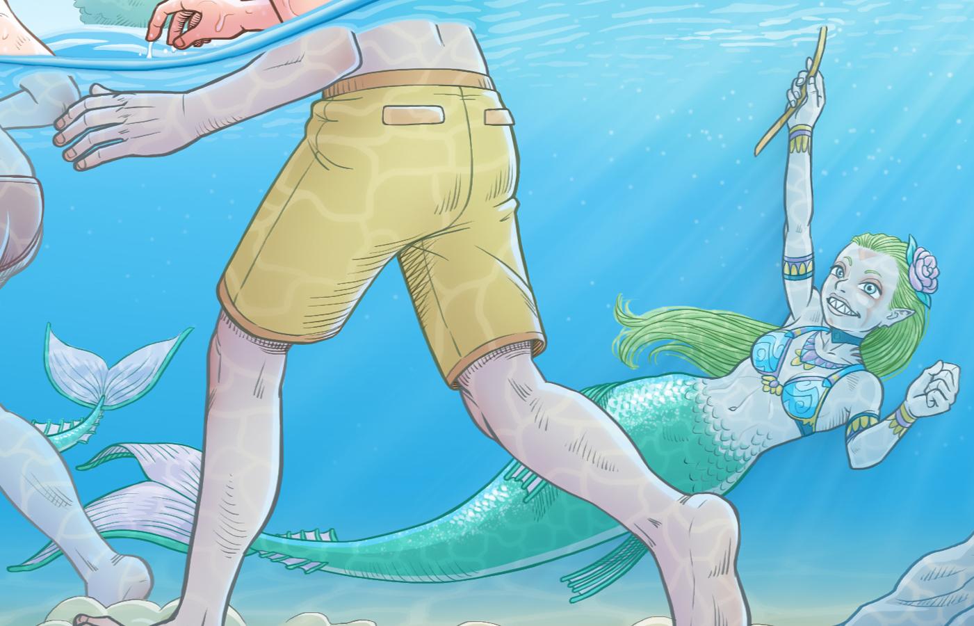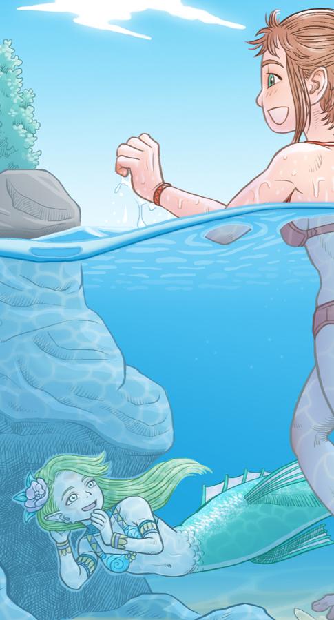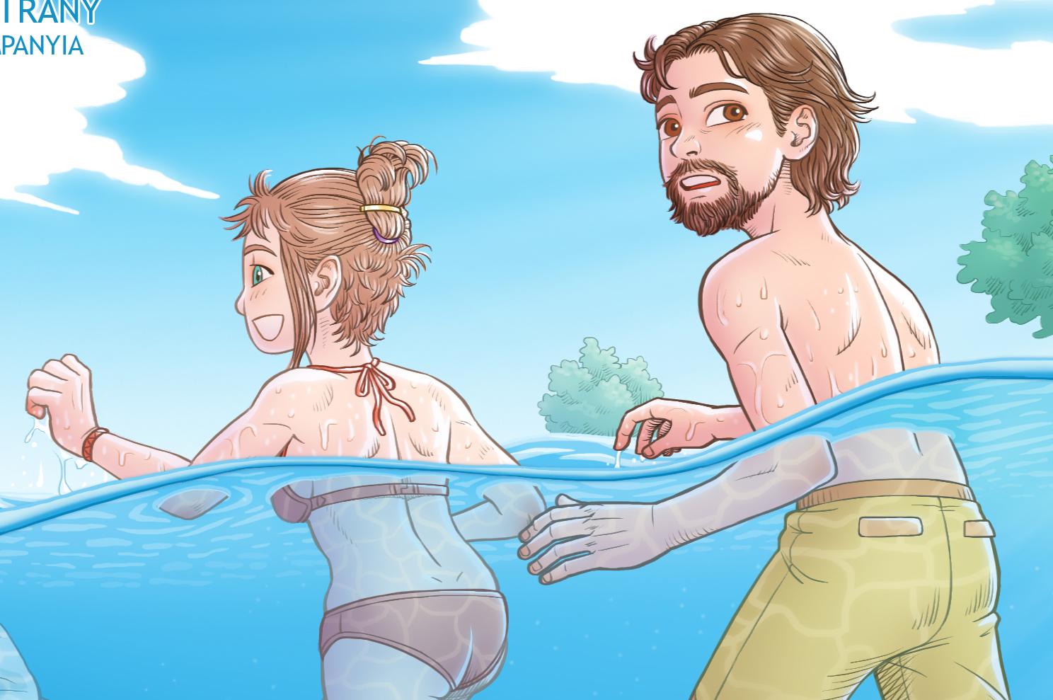 Un Lloc Estrany personatges personajes characters amics amigos friends noia chica girl home hombre man sirena mermaid parella pareja couple color digital riu río river llac lago lake sota l'aigua bajo el agua under water