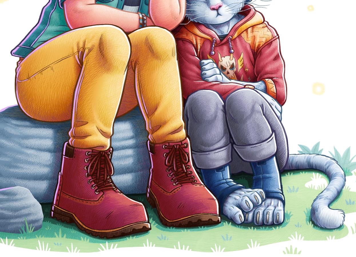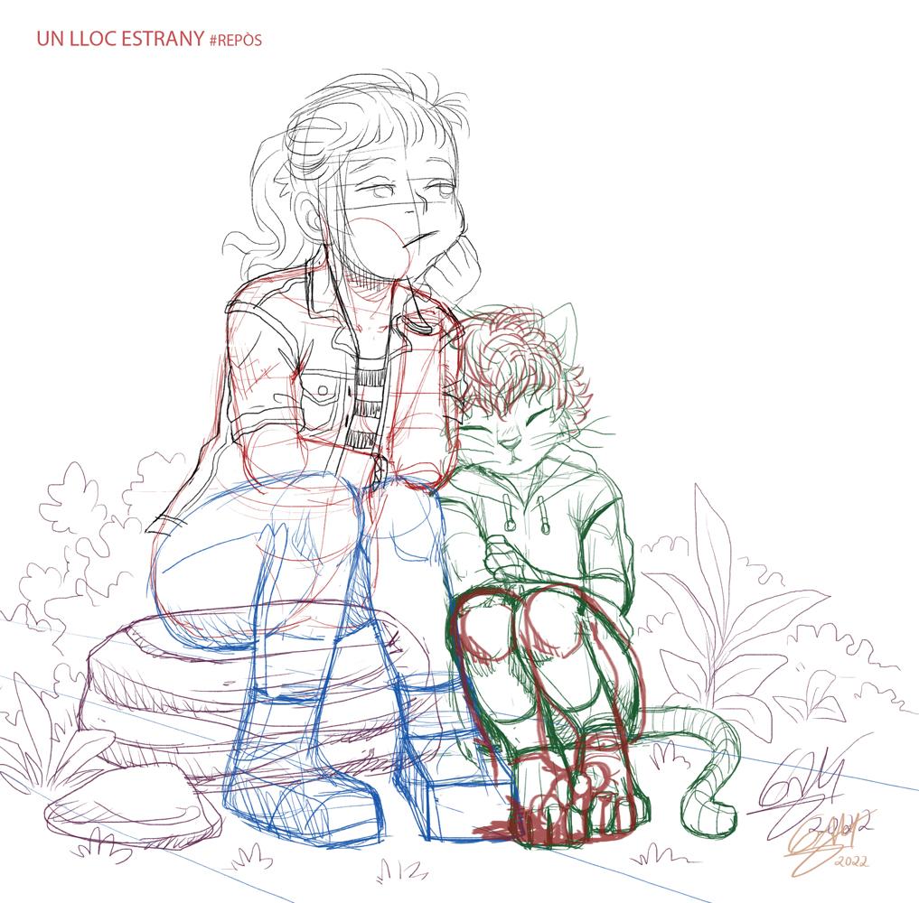 Il·lustració feta l'any 2022 per representar un moment de dos personatges de l'obra personal "Un Lloc Estrany".