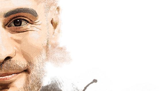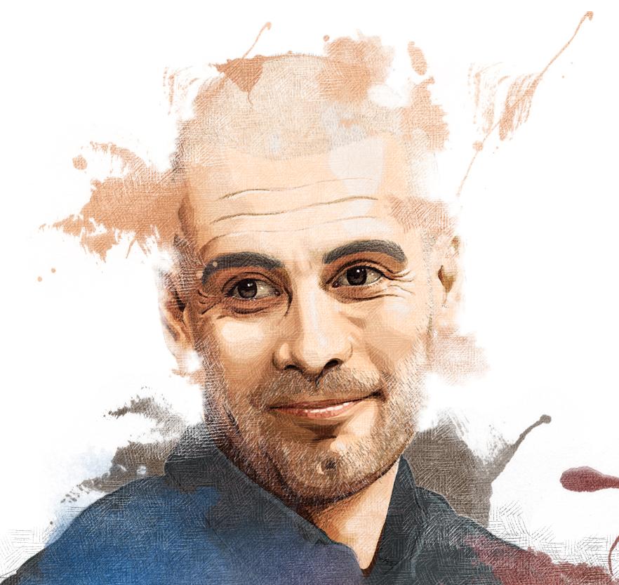 Agafant en Pep Guardiola com a model per practicar amb les textures i les taques. La línia base de contorn, és d'una fotografia.