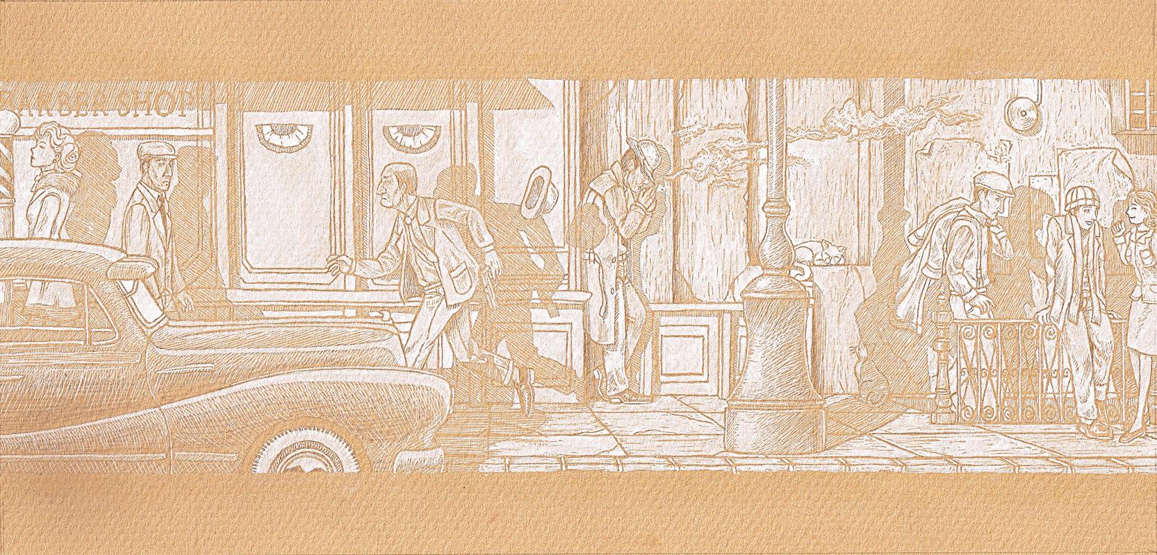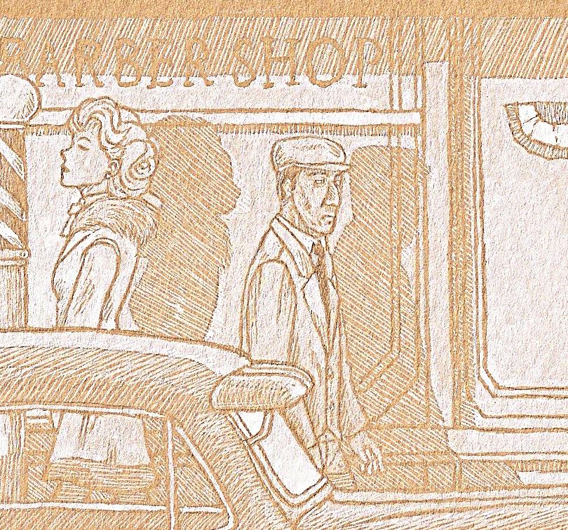 Il·lustració del 2011 feta amb la tècnica de la reserva per representar una escena als EUA dels anys 40-50.