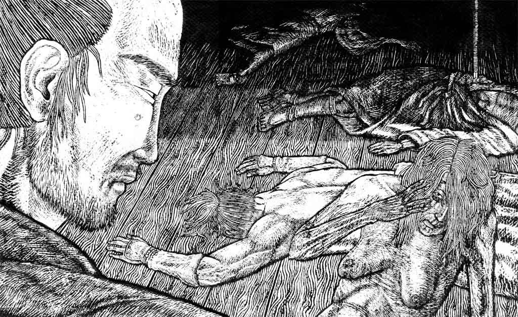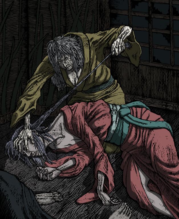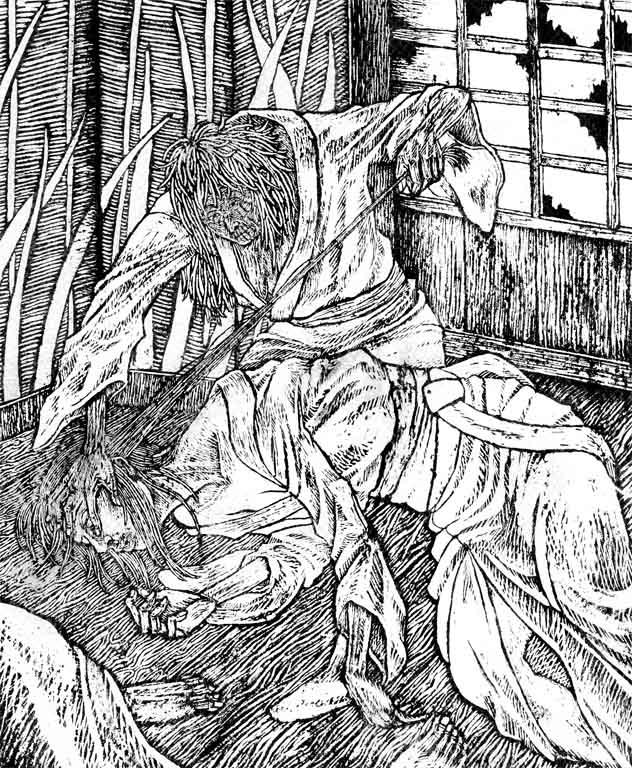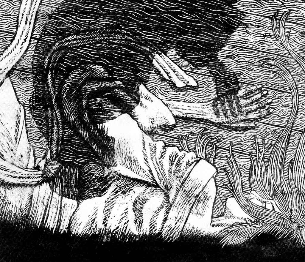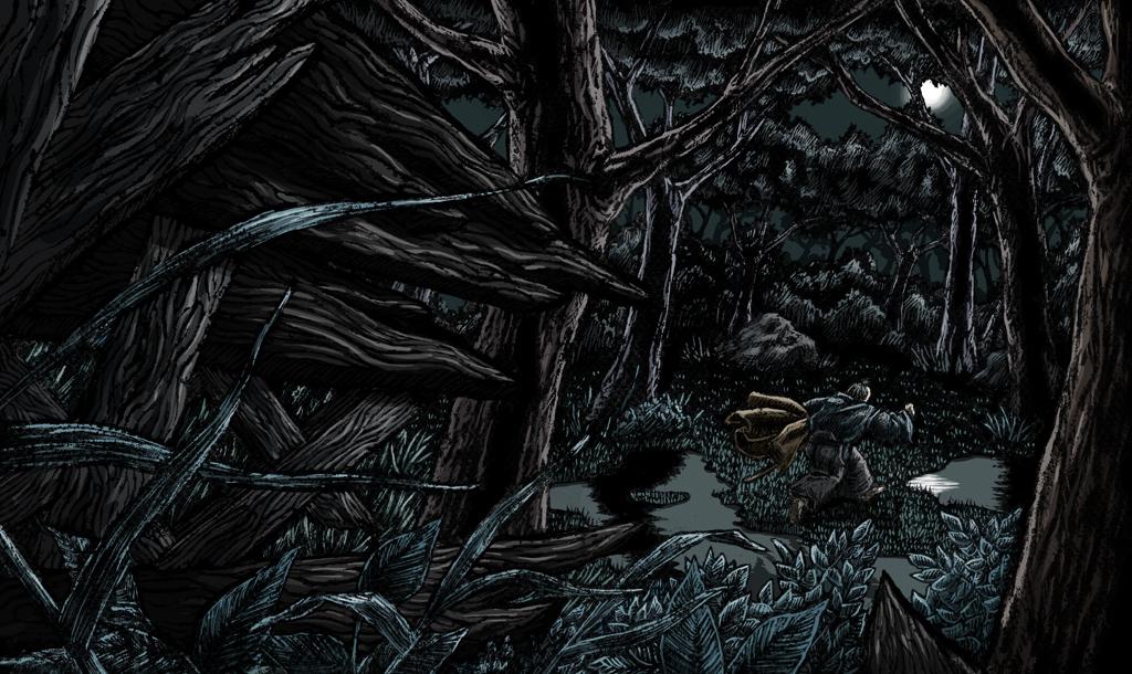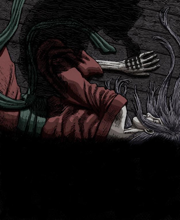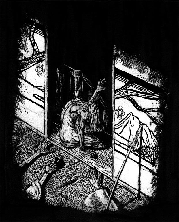 Van ser un total de deu imatges, més la portada, fetes amb la tècnica de la reserva (gouache i tinta xina), per emfatitzar l'ambient i la foscor que es narra.